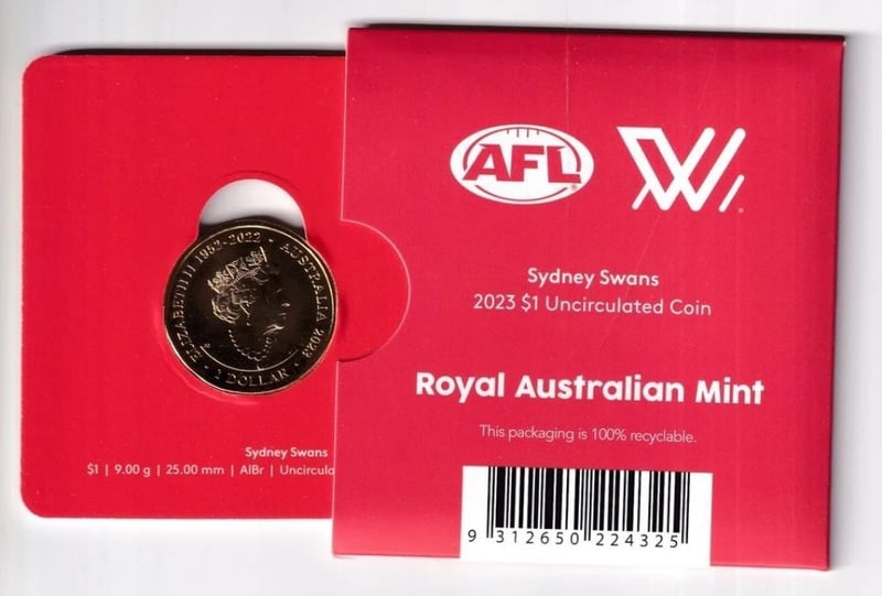 AUSTRALIAN: 2023 $1 AFL TEAM SYDNEY SWANS UNC COIN IN CARD 294175+11