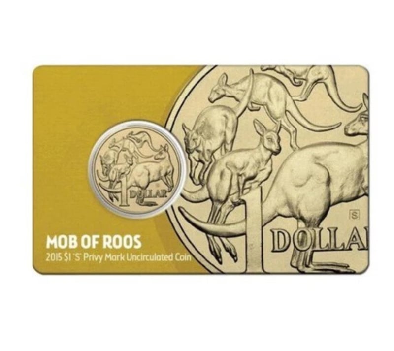2015 MOB OF ROOS "S" PRIVY MARK $1 UNCIRCULATED SPECIMEN COIN IN COLOURED CARD. STRICKLY LIMITED MINTAGE 5000….RARE 294175+16