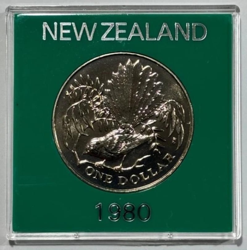 1980 NEW ZEALAND 1 DOLLAR - ELIZABETH II BERRY PORTRAIT FANTAIL BIRD COIN
