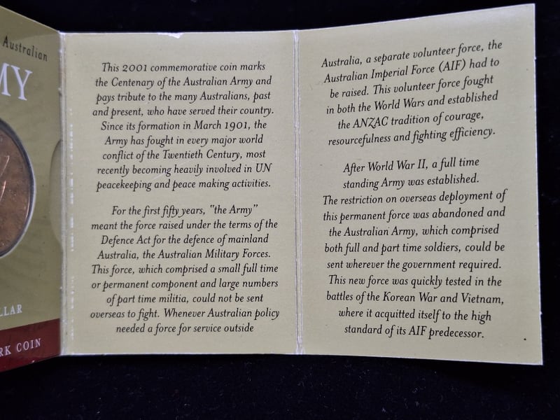 CENTENARY OF THE AUSTRALIAN ARMY COMMEMORATIVE ONE DOLLAR COIN 1901-2001