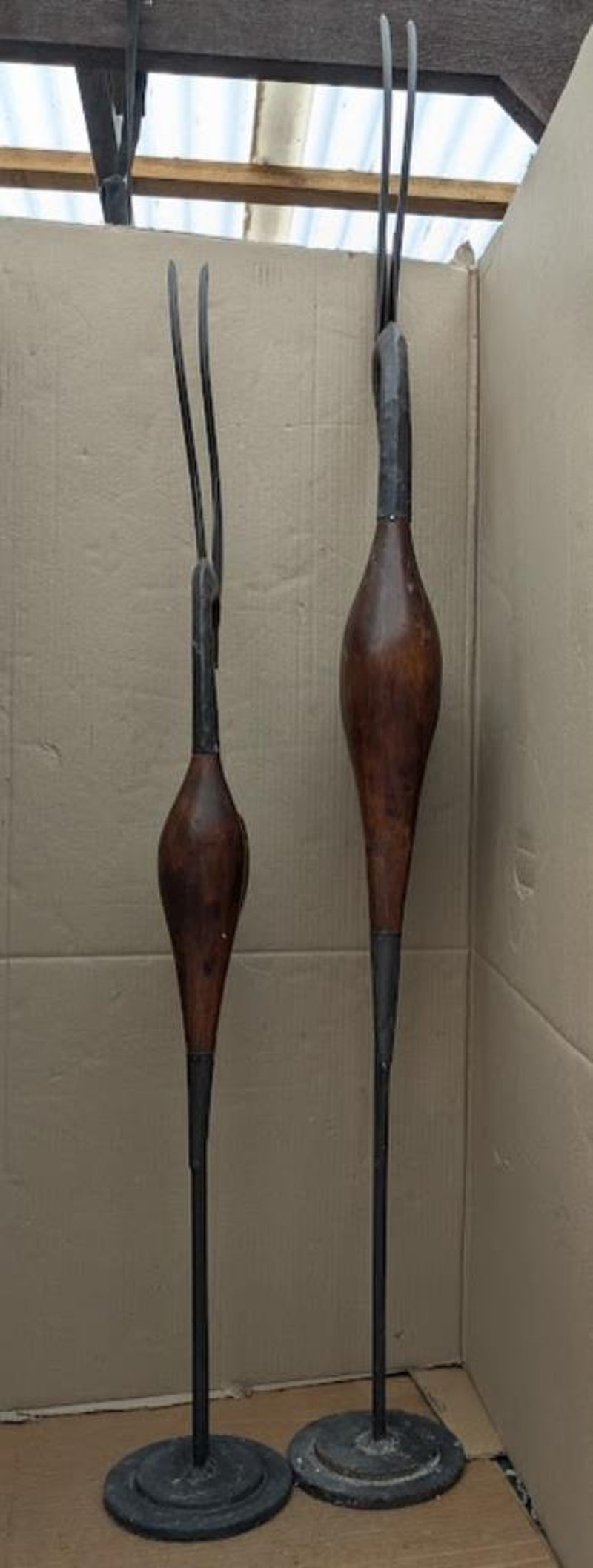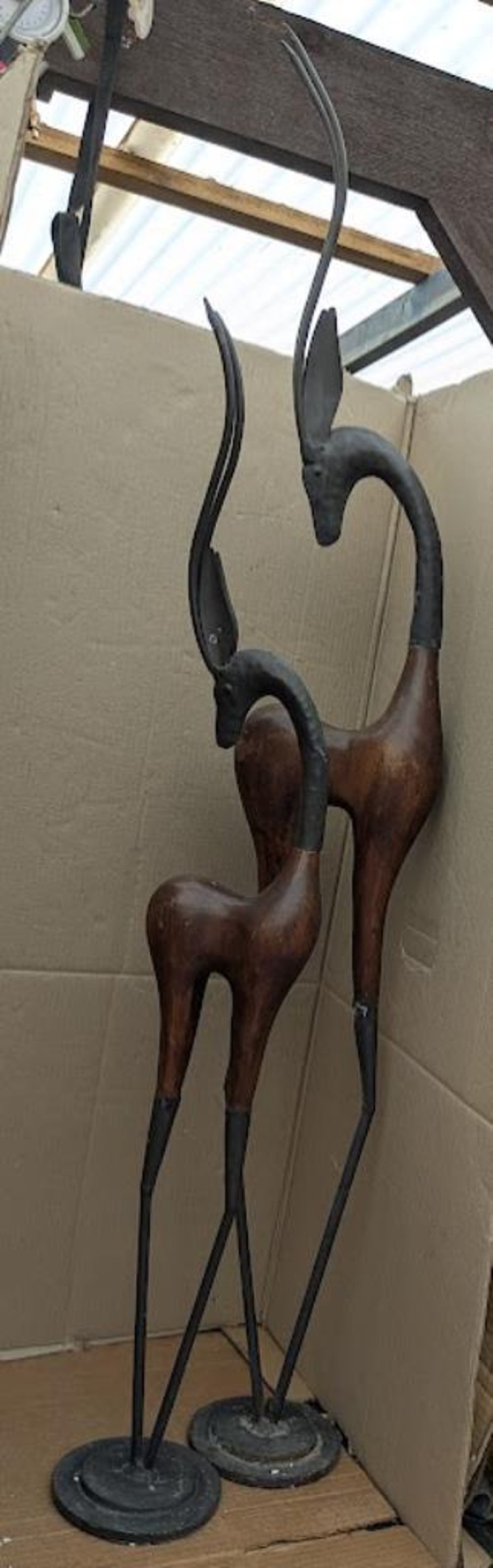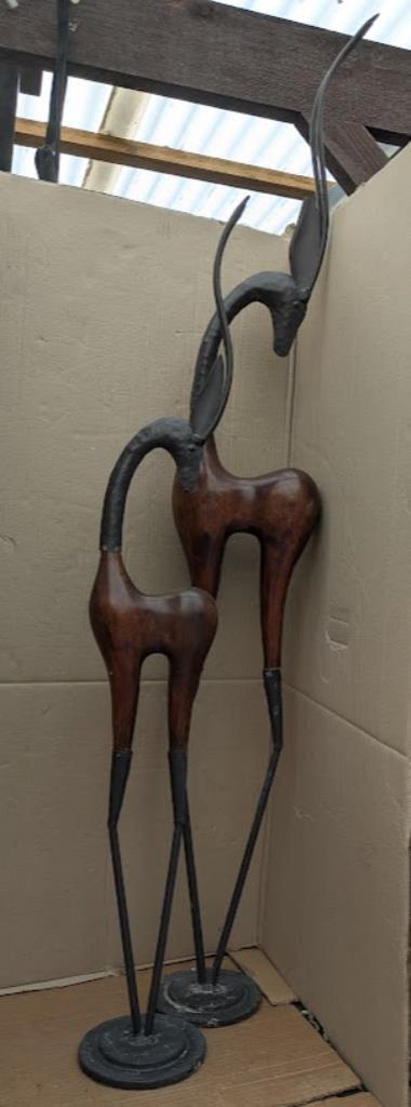 ART DECO PAIR OF GAZELLE ANTELOPE STEEL AND HARDWOOD