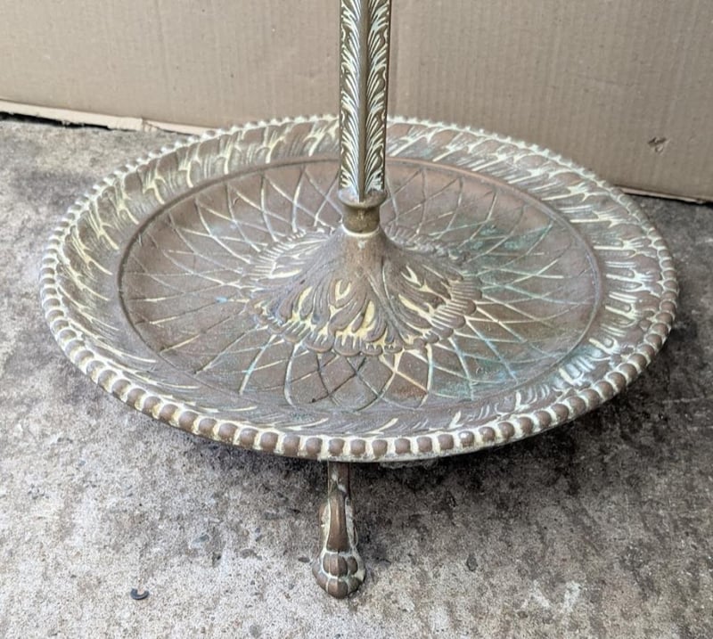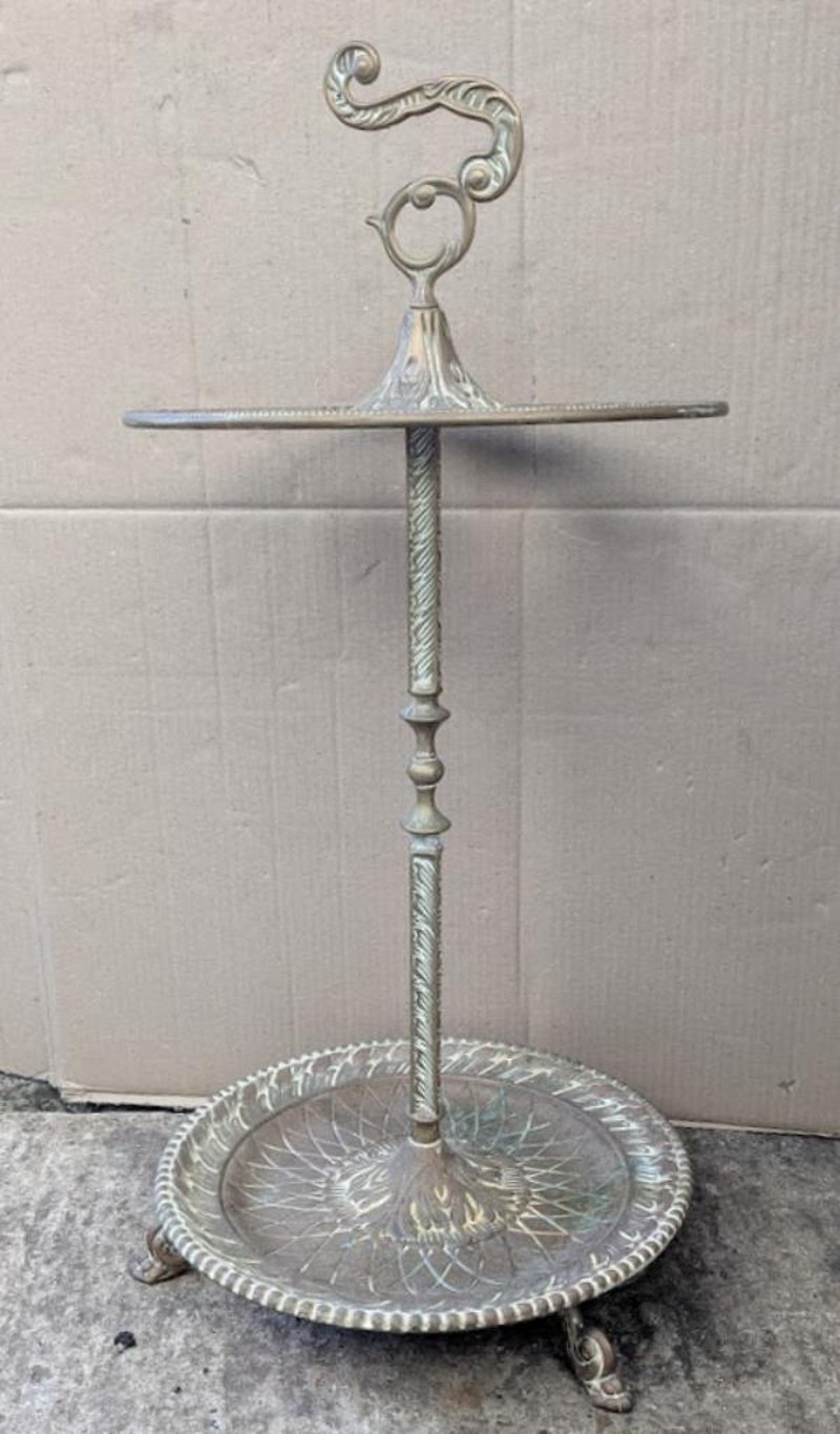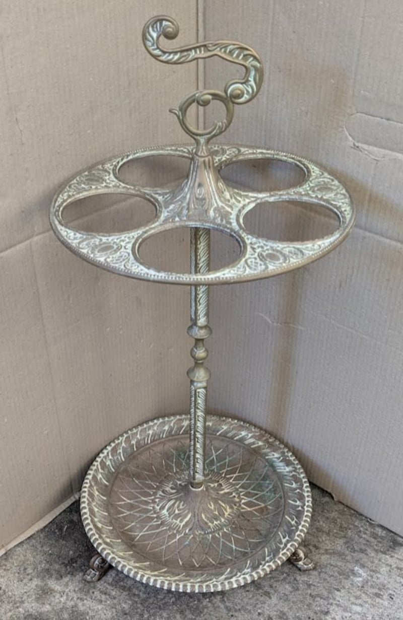 VINTAGE BRASS UMBRELLA STAND WITH 3 - FOOTED STAND AND DRIP COLLECTOR