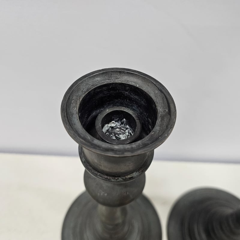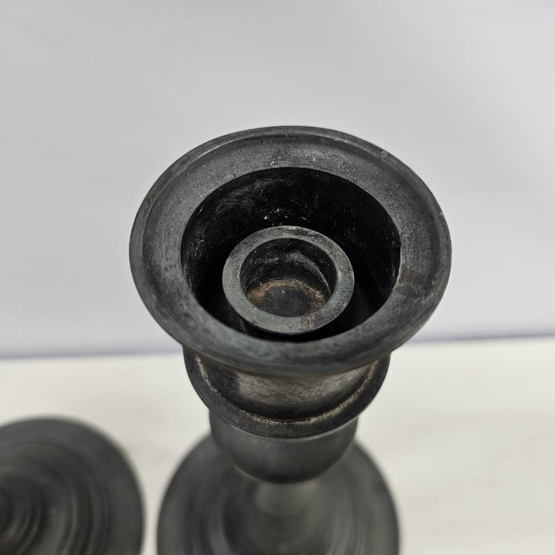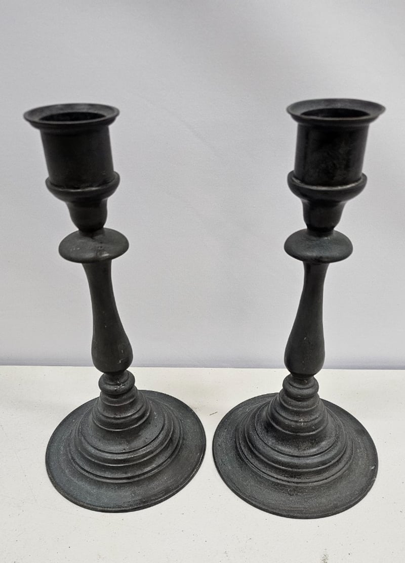 PAIR OF COPPER CANDLESTICKS WITH STEPPED CIRCULAR BASES