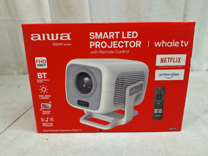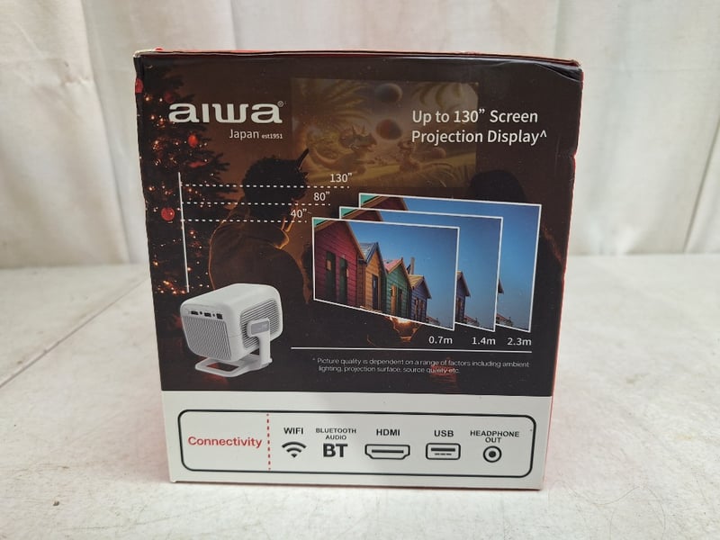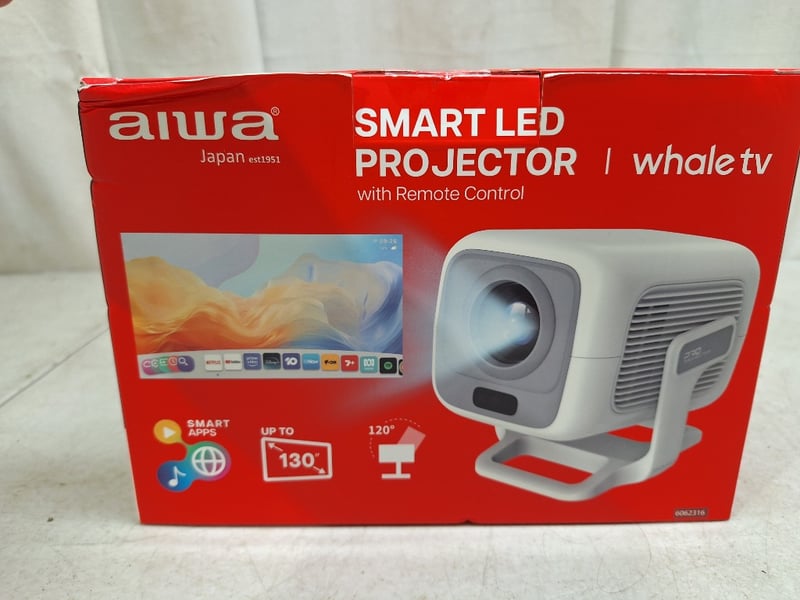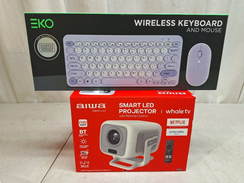 1 x AIWA smart LED projector with remote control, FHD1080P, up to 130" screen projection display, RRP$199.00, NEW factory sealed in box, 1 x EKO wireless keyboard and mouse, NEW factory sealed in box