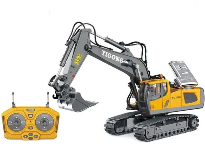 RC Excavator 2.4 GHZ 11 Channel Alloy & Plastic Constructions 360-degree Rotating Cabin Multiple Direction Control rubber tracks Sound and Lighting Function One Button Auto Demonstration USB Charging Approx 32cm Length 16cn Height (3 x AAA batteries needed for remote are not included) (NEW IN BOX) YELLOW