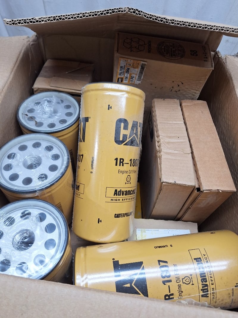 Bulk lot of Caterpillar engine maintenance filters and components. SOLD AS LOT