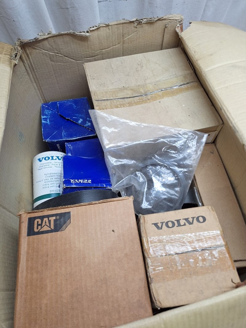 Mixed lot engine parts including Volvo and CAT branded components. SOLD AS LOT
