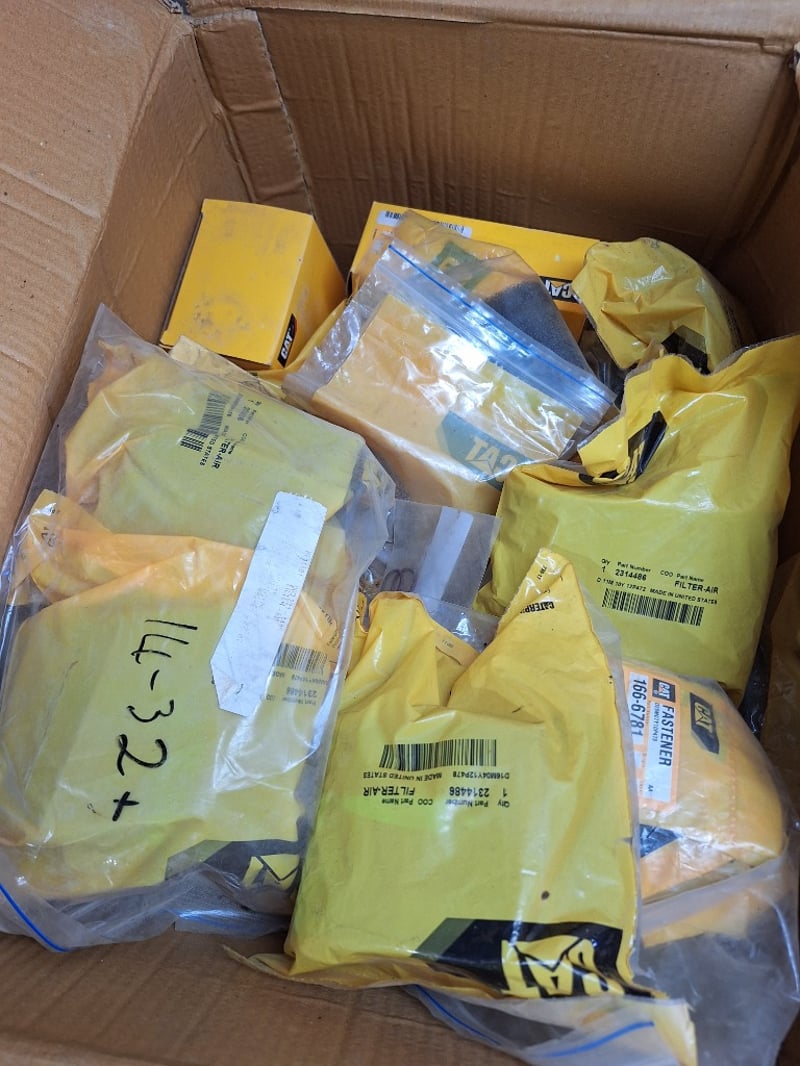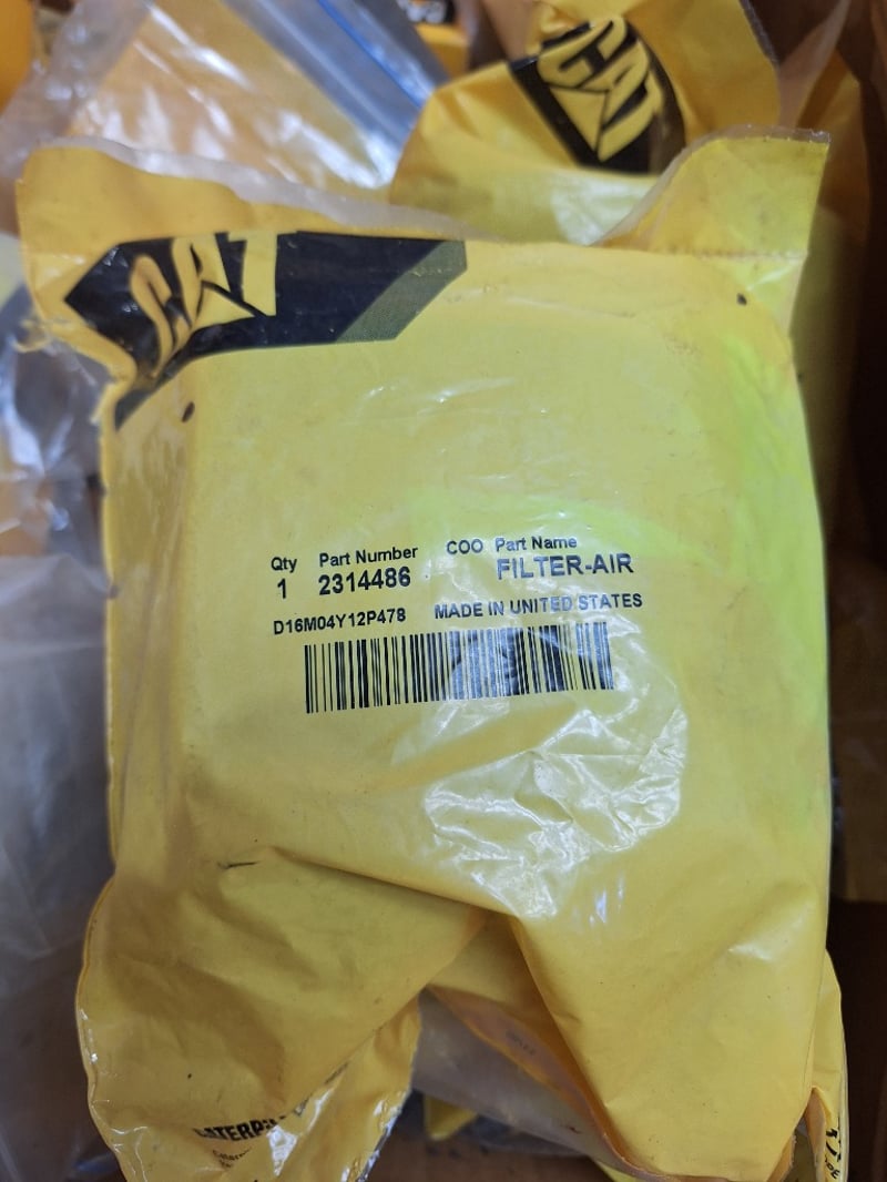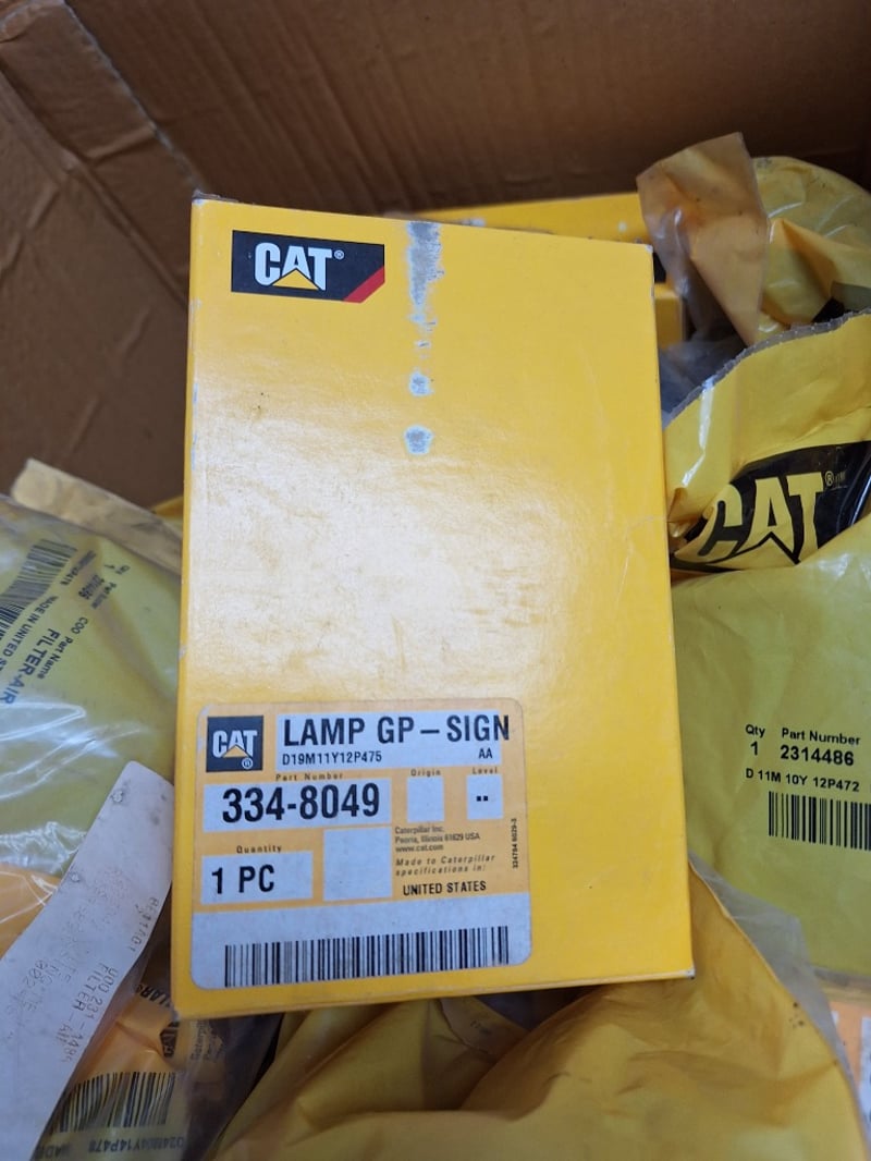 Bulk lot of CAT parts and components. Contents include multiple FILTER-AIR units (part number 2314486), LAMP GP-SIGN assembly (part number 334-8049) SOLD AS LOT