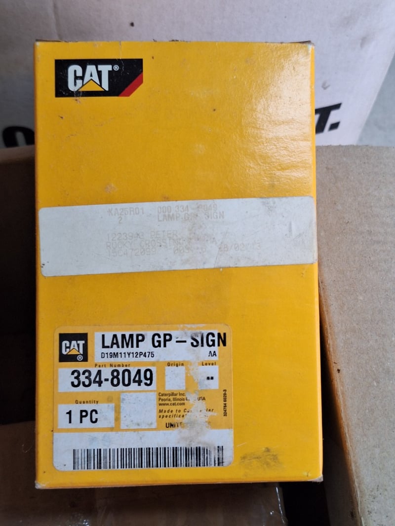 Caterpillar equipment parts lot. Includes CAT Hydraulic Oil Filter. CAT Lamp GP-Sign component & More SOLD AS LOT