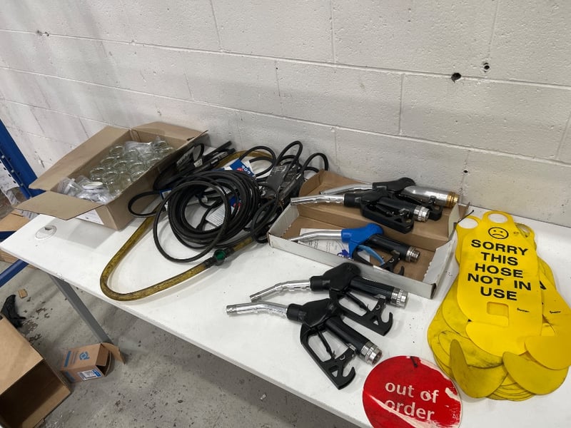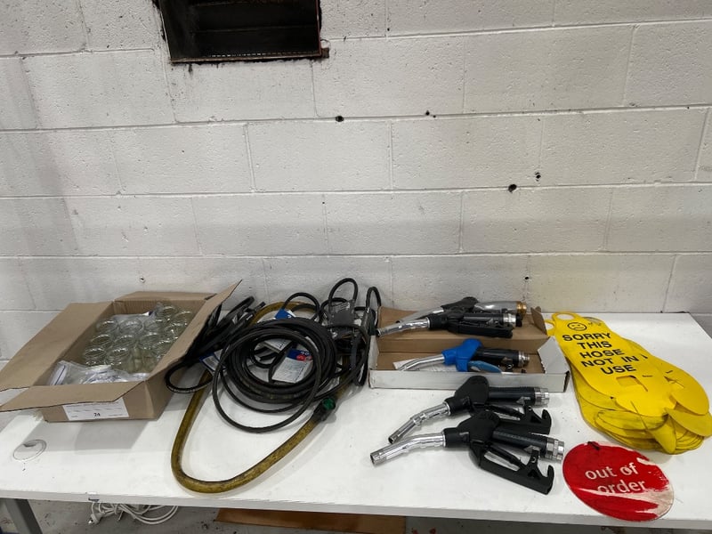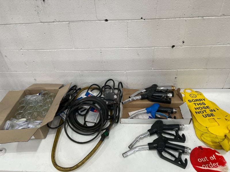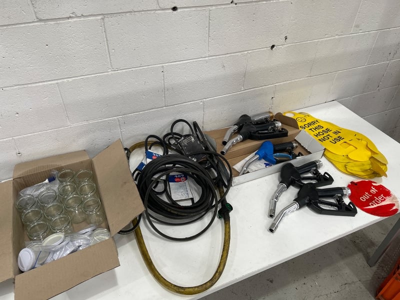 Water hose, Signage, Brand new bowser pumps, glass jars, rubber belts
