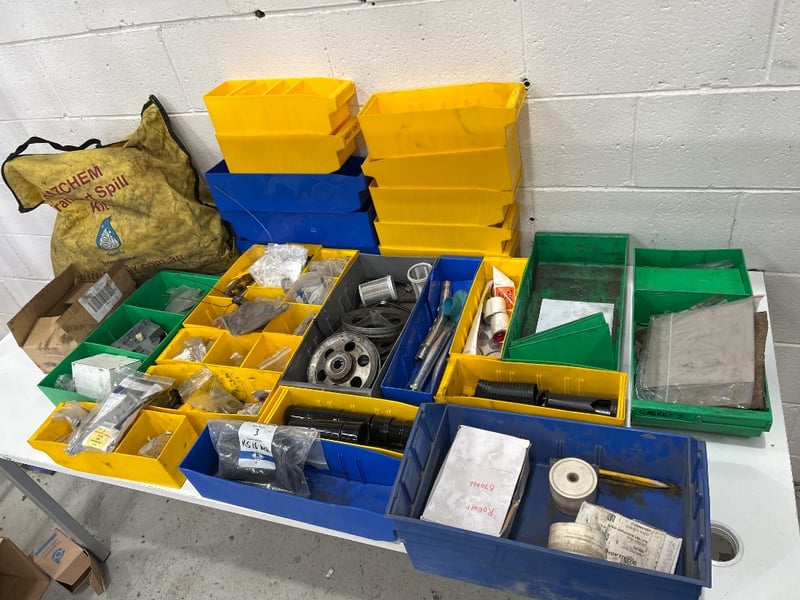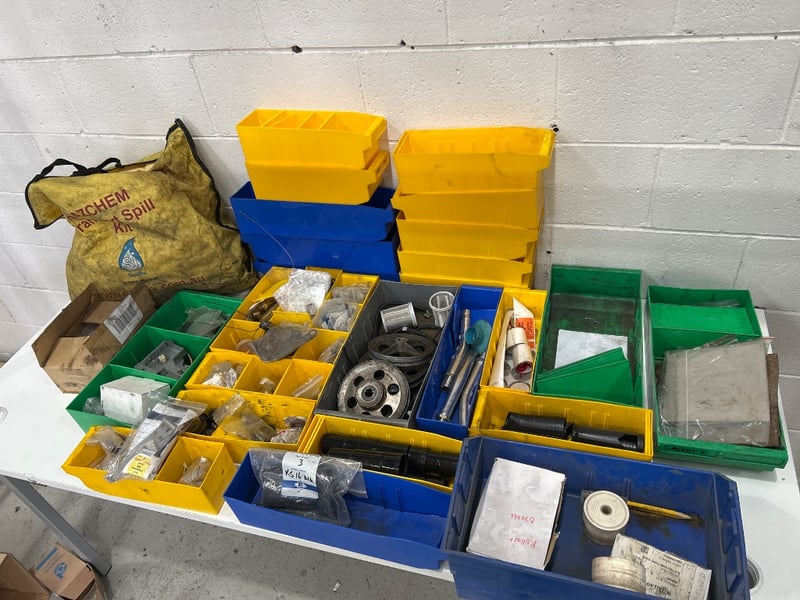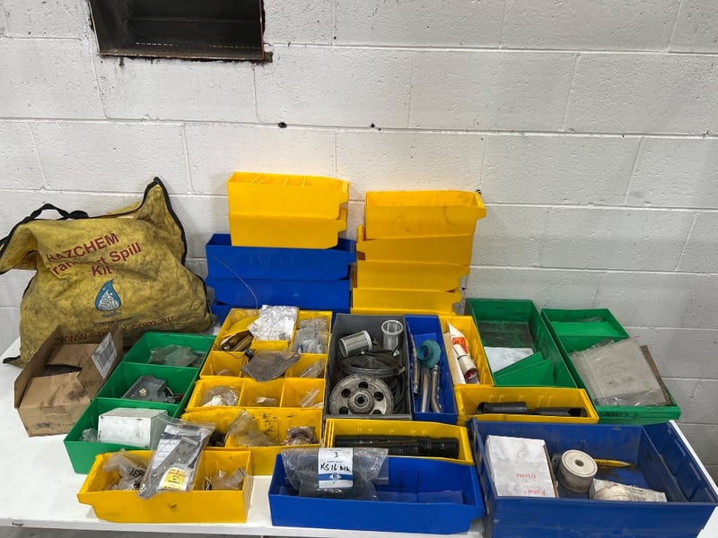 Tool kit dividers, hazard spill kit, steel pipes, nuts, bolts, fittings, shaft pulleys & more. Sold as lot