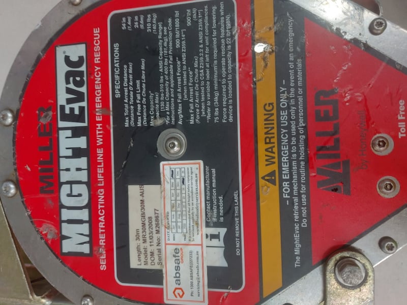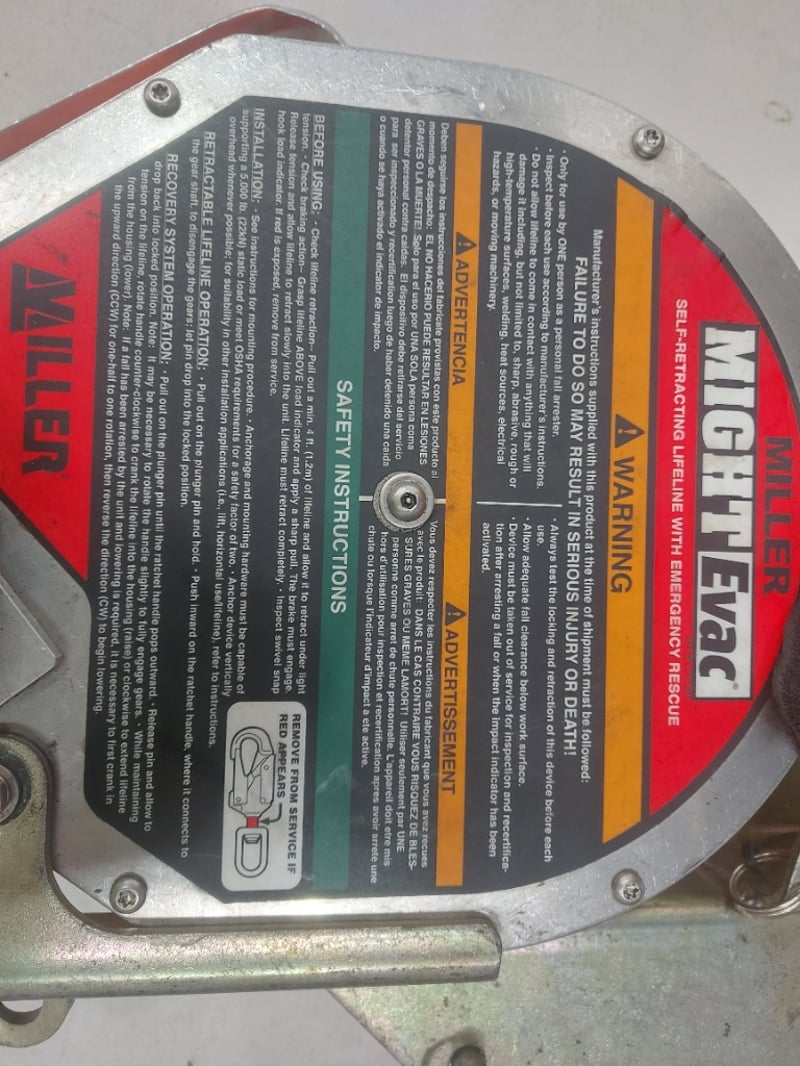 Self retracting Lifeline, Make: Miller Might Evac, Model No: Unknown,