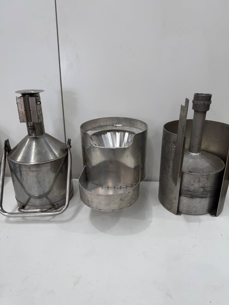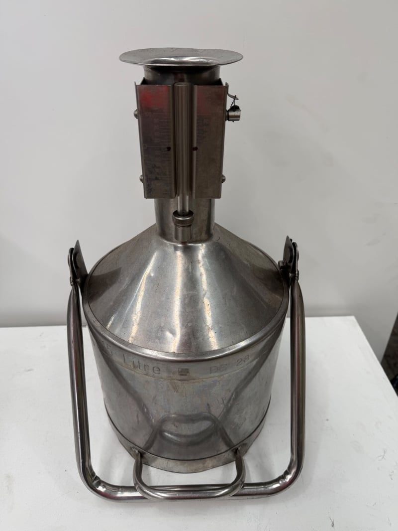 Assortment of Stainless Steel Feed Hopper, 15Lt Stainless Steel Measuring can and more. SOLD AS LOT