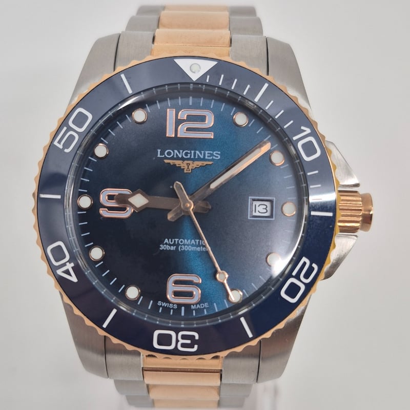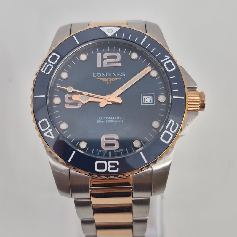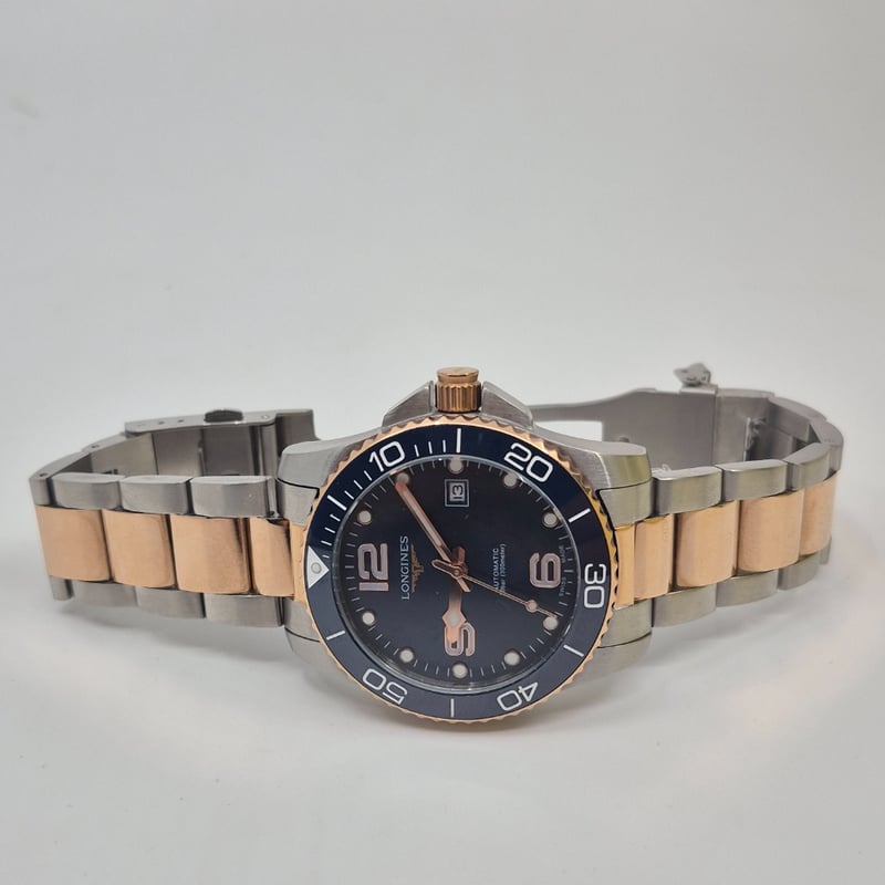 LONGINES HYDROCONQUEST DIAL: NAVYCASE DESCRIPTION: STAINLESS STEELCASE SIZE: 41MMBRACELET: STAINLESS STEELMOVEMENT: AUTOMATICBOX: INCLUDEDPAPERS: INCLUDEDCondition: Good - Refer To ImagesAdditional Information: Non Numerical Hour Markers ( Except 6,9 & 12)Luminous Hr Markers And HandsDate At 3'O'ClockFold Clasp582956+3