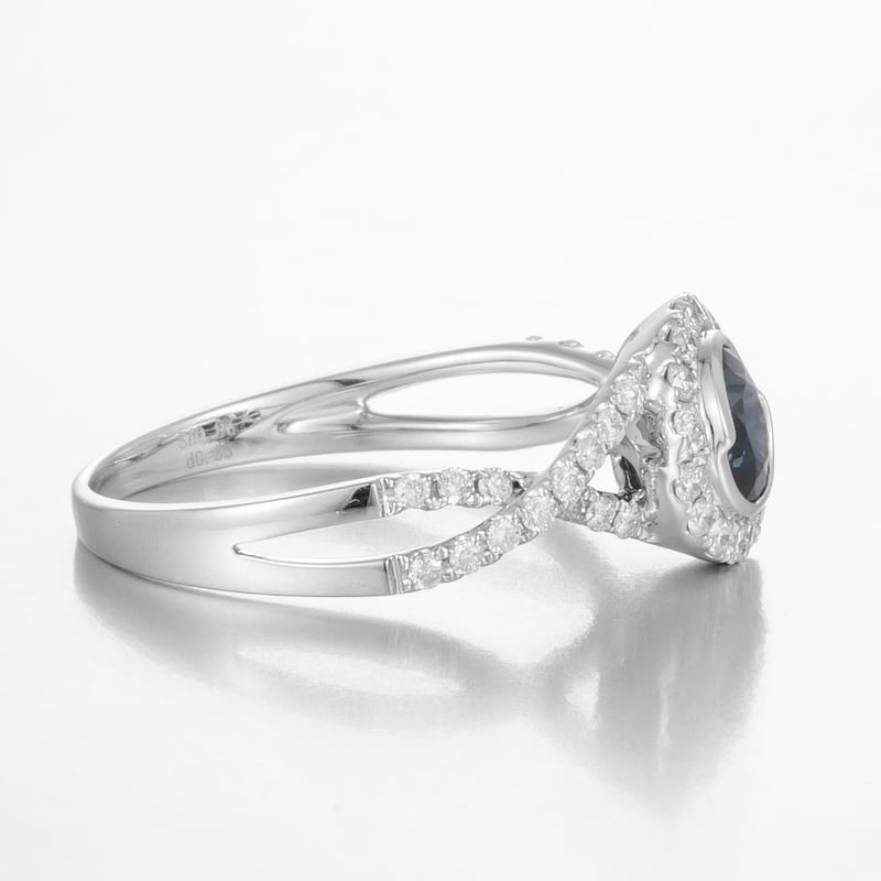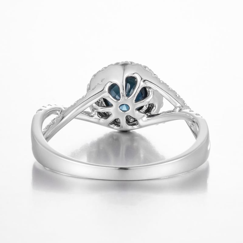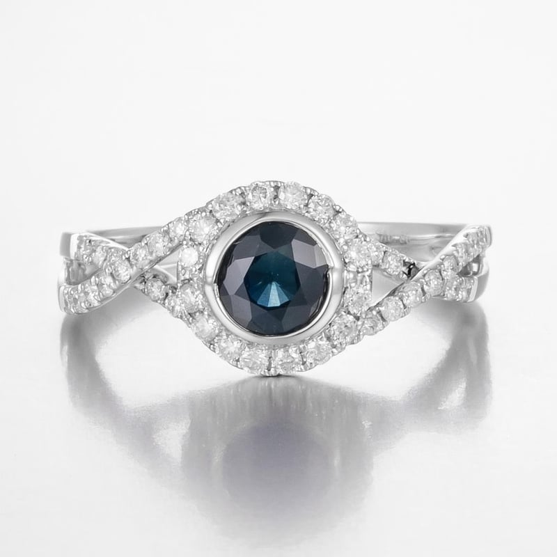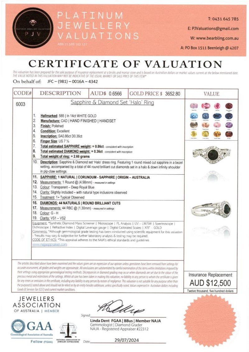 14CT WHITE GOLD BLUE SAPPHIRE AND DIAMOND HALO RING