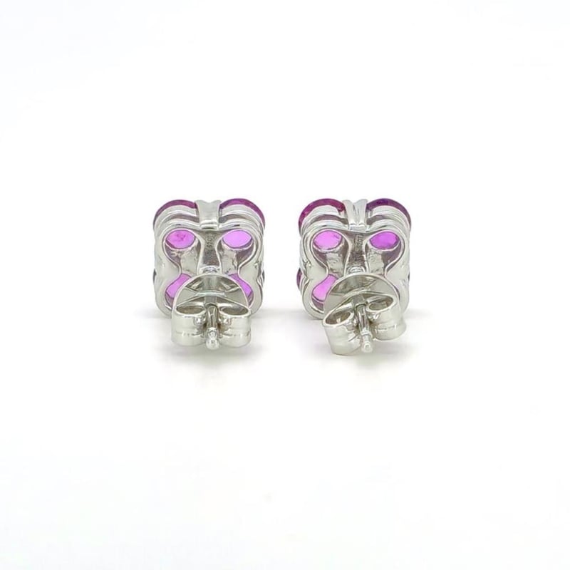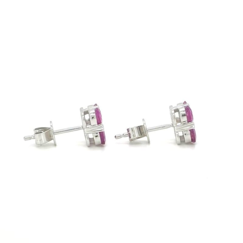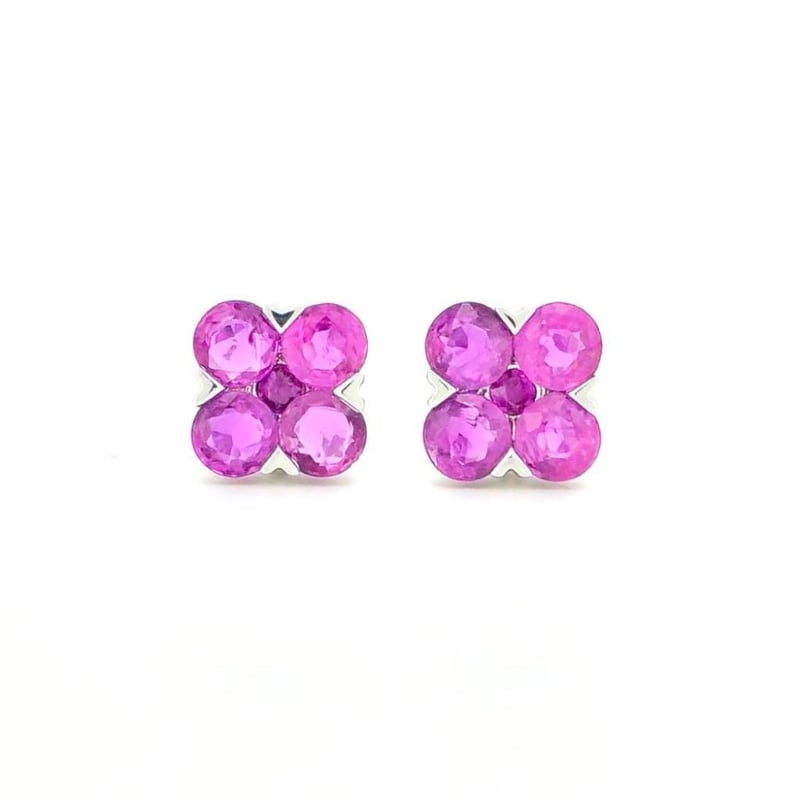 9CT WHITE GOLD CEYLON RUBY FLORAL STUD EARRINGS