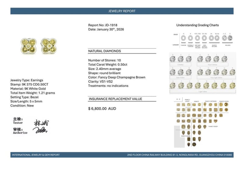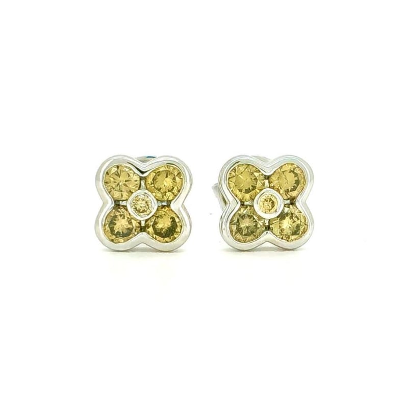 9CT WHITE GOLD FANCY CHAMPAGNE BROWN DIAMOND FLORAL STUD EARRINGS