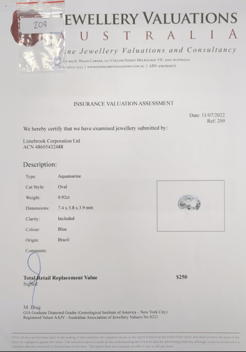 This valuation has been conducted by an independent third-party professional. The valuation amount is an assessment by the issuing valuer and does not reflect the auction value of the item.