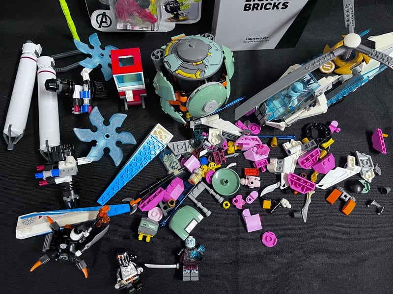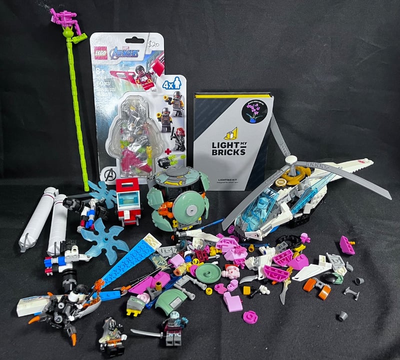 LEGO MARVEL AVENGERS COLLECTION WITH LIGHT MY BRICKS LIGHTING KITSComprehensive Lego Marvel Avengers Building Set Collection Featuring Multiple Minifigures And Aircraft Models, Accompanied By Light My Bricks Led Lighting Kits Designed For Lego Compatibility. Includes Marvel Avengers Set 40418 (60 Pieces, 4 Minifigures), Assorted Lego Bricks In Vibrant Pink, Blue, Green And Yellow, Two Constructed Aircraft With Detailed Components, And Complete Lighting System Comprising Pink 30Cm Bit Light, Warm White 30Cm Larger Bit Light, Usb Power Cable, Connecting Cables,Condition: Good - Refer To Images584548+6