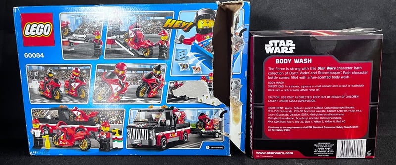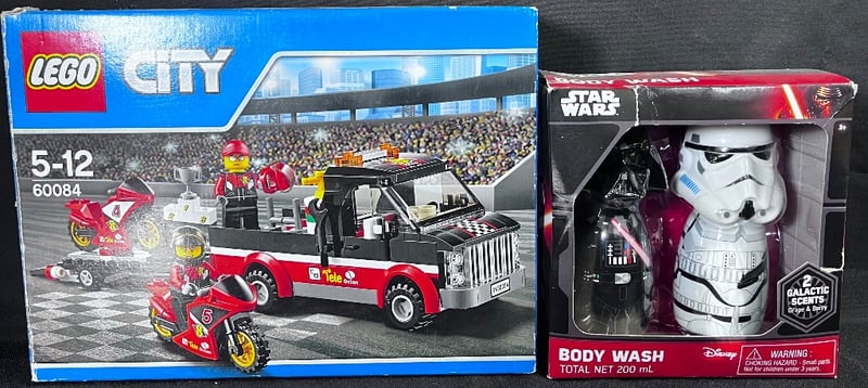 LEGO CITY SET 60084 RACING TEAM WITH STAR WARS BODY WASH GIFT SETLego City Set 60084 Featuring A Red Racing Team Transporter Truck With Motorcycle And Minifigures, Accompanied By A Star Wars Darth Vader/Stormtrooper Themed Body Wash (200Ml). Set Appears Complete With Original Packaging Showing Stadium Racing Scenes. Includes Racing Bikes, Pit Crew Figures, And Detailed Truck Assembly. Star Wars Bath Product Features Galactic ScentsCondition: Good - Refer To Images584548+14