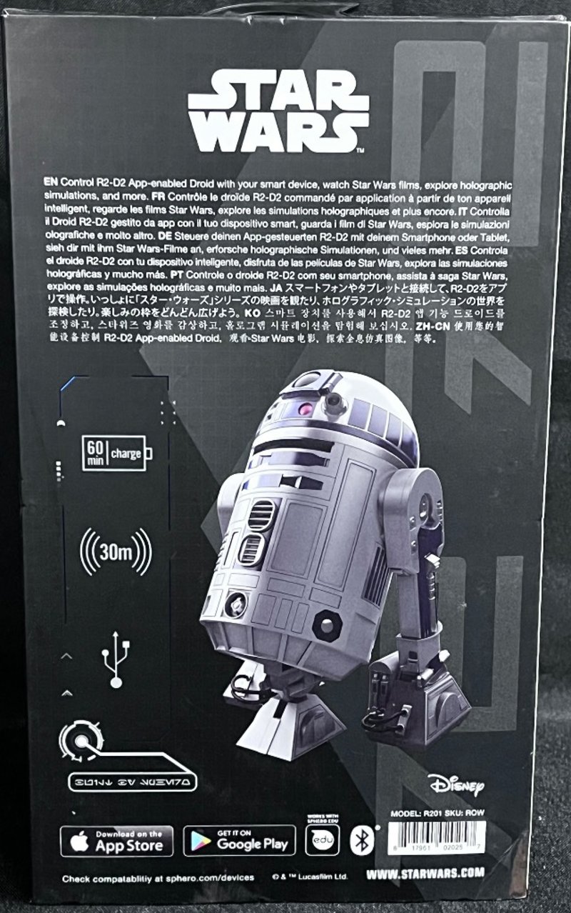 STAR WARS R2-D2 APP-ENABLED DROID BY SPHEROSphero'S R2-D2 App-Enabled Droid Featuring Intelligent Bluetooth Connectivity, 30M Wireless Range, 60-Minute Battery Charge Capacity, And Interactive Holographic Simulation Capabilities. Includes Smart Device App Control For Star Wars Film Exploration And Droid Command Functions. Original Packaging With Multilingual Instructions Intact.Condition: Good - Refer To Images584548+31