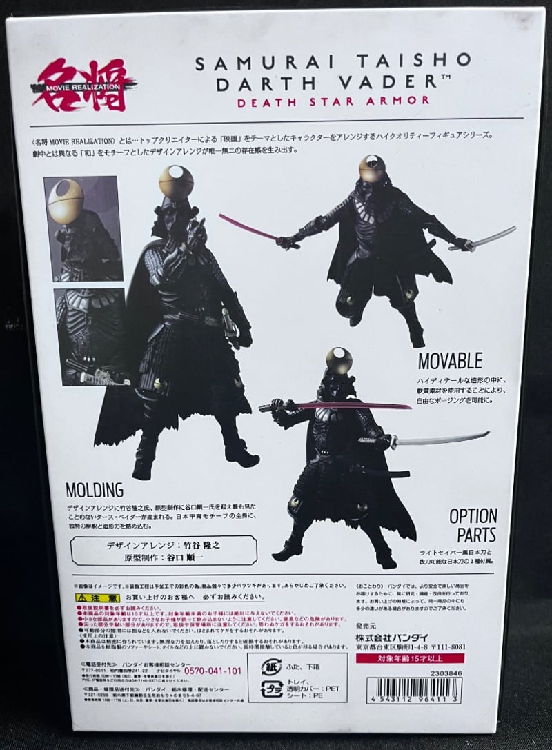 BANDAI S.H. FIGUARTS SAMURAI TAISHO DARTH VADER DEATH STAR ARMORJapanese Import Bandai S.H. Figuarts Collectible Figure Featuring Darth Vader In Samurai-Inspired Death Star Armor. Movie Realization Series Hybrid Figure With Articulated Joints, Interchangeable Hands, Alternative Helmet, And Dual Lightsaber Accessories. Includes Molded Armor Plating With Japanese Design Elements And Option Parts For Dynamic Posing.Condition: Good - Refer To Images584548+33