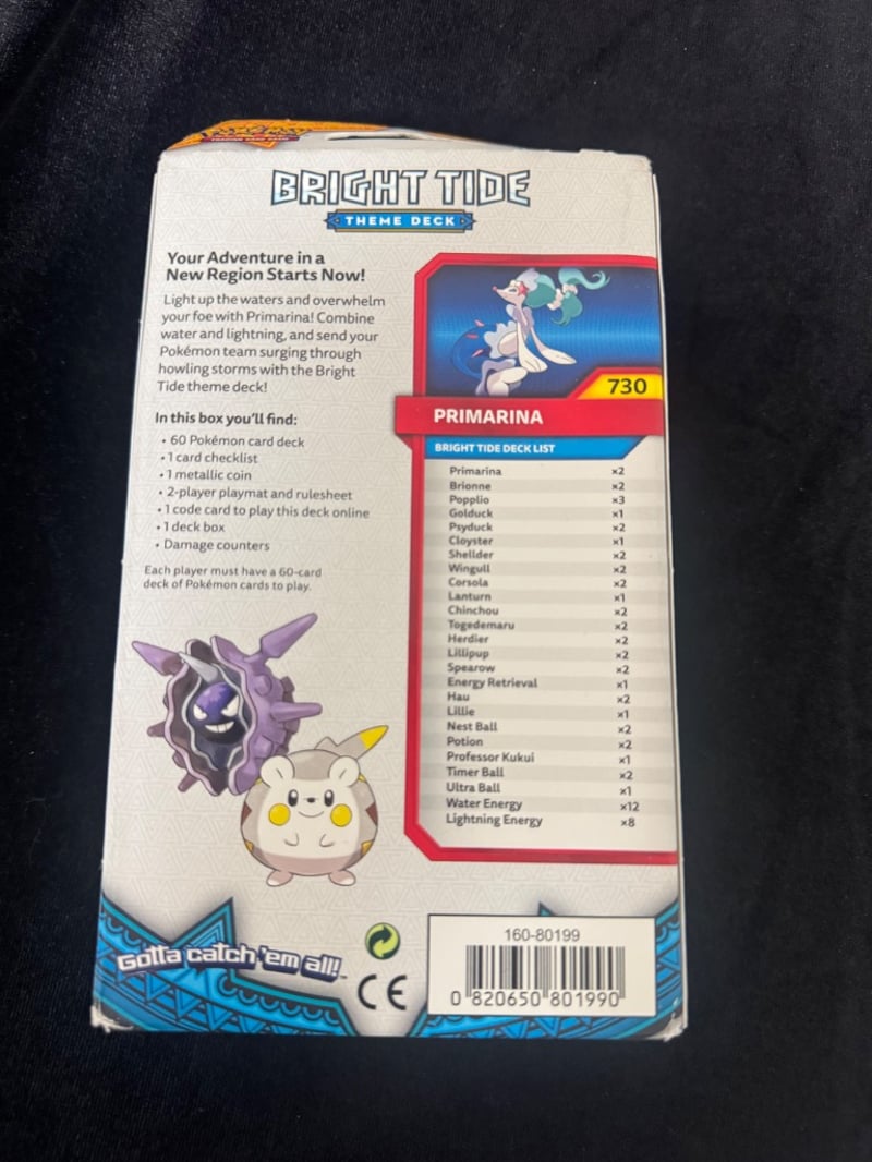 POKÉMON TCG BRIGHT TIDE THEME DECK - PRIMARINA (SEALED)Item Size: Height: 10cm, Width: 10cm, Depth: 10cm, Weight: 1KgSealed Pokémon Trading Card Game Bright Tide Theme Deck Featuring Primarina As The Focal Character. Includes 60-CardCondition: Good - Refer To Images584548+38