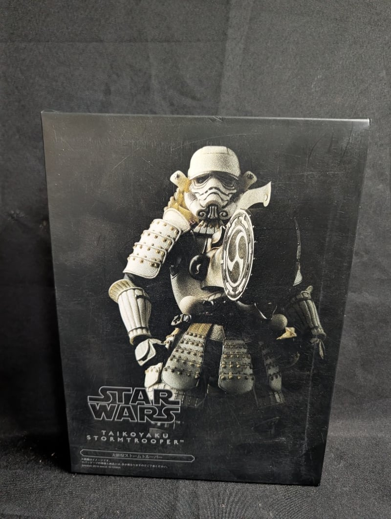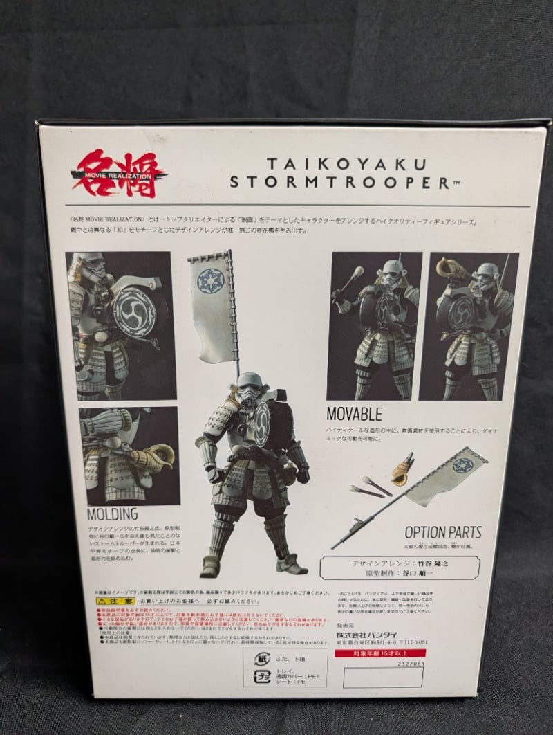 BANDAI TAIKOYAKU STORMTROOPER STAR WARS FIGURE - MOVIE REALIZATION SERIESItem Size: Height: 25cm, Width: 20cm, Depth: 20cm, Weight: 2KgJapanese Import Bandai Movie Realization Taikoyaku Stormtrooper Collectible Figure Featuring Samurai-Inspired Armor Design With Articulated Joints, Interchangeable Parts Including Weapon Accessories, Shield, And Alternate HandsCondition: Fair - Refer To Images584548+44