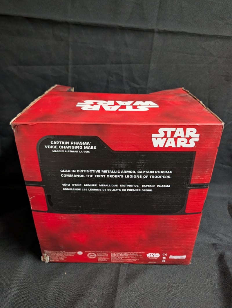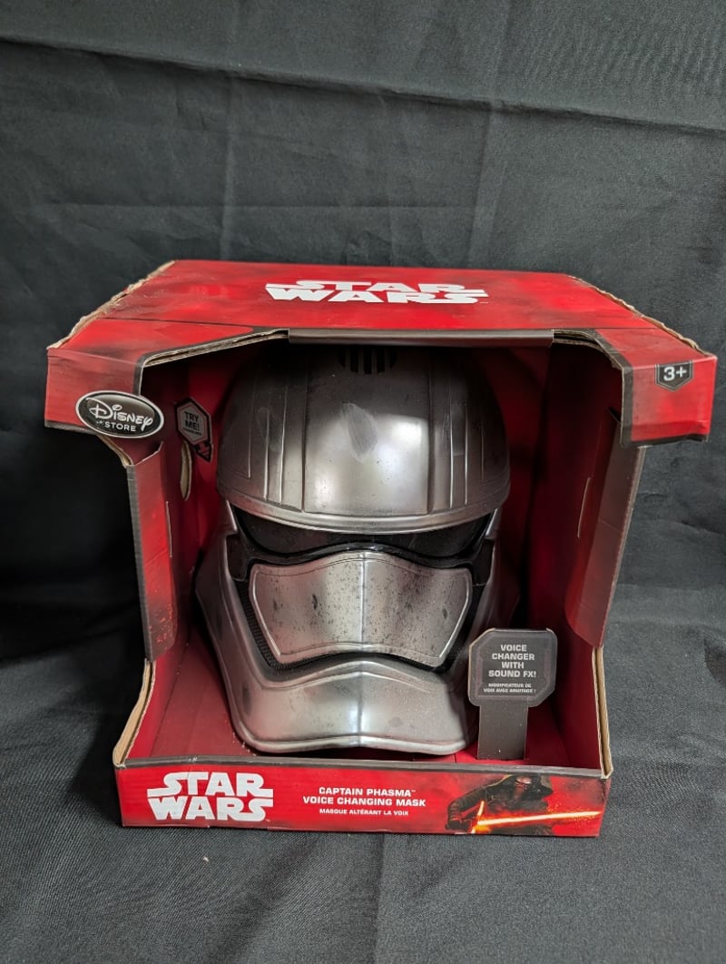 STAR WARS CAPTAIN PHASMA VOICE CHANGING MASK - DISNEY STORE COLLECTIBLEItem Size: Height: 35cm, Width: 35cm, Depth: 35cm, Weight: 2KgDisney Store Star Wars Captain Phasma Voice Changing Mask Featuring Metallic Silver And Copper-Toned Armor Design. Interactive Toy With Voice Changer Technology And Sound Effects. Original Red Retail Packaging With Bilingual Labeling (English/French). Designed For Ages 3+. Depicts The First Order Commander In Distinctive Metallic Armor. Includes Voice Modulation Functionality Activated By Sound Chip Mechanism.Condition: Fair - Refer To Images584548+47