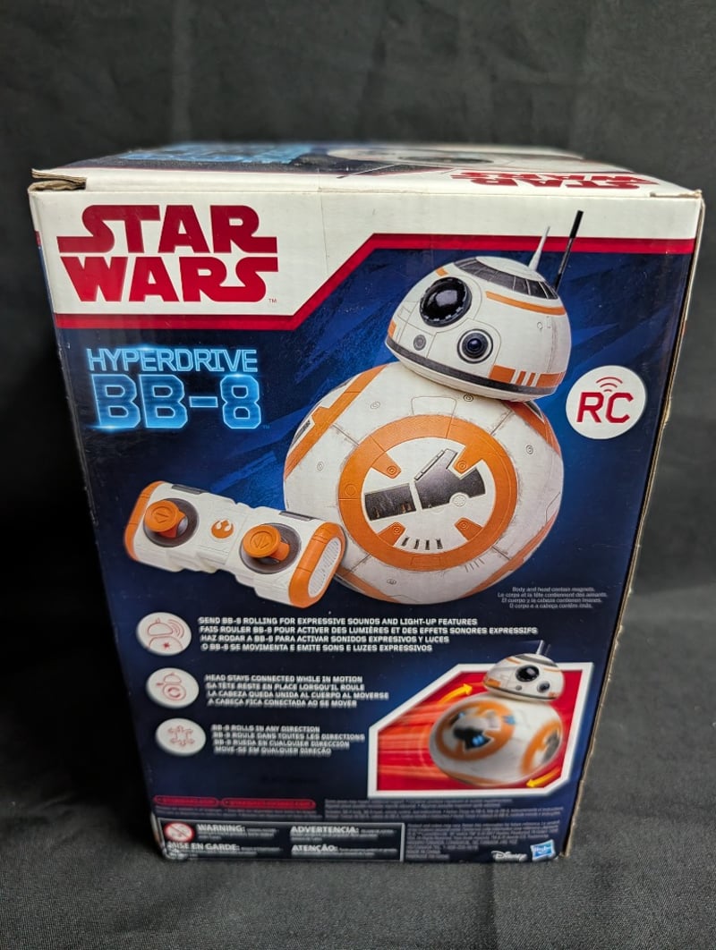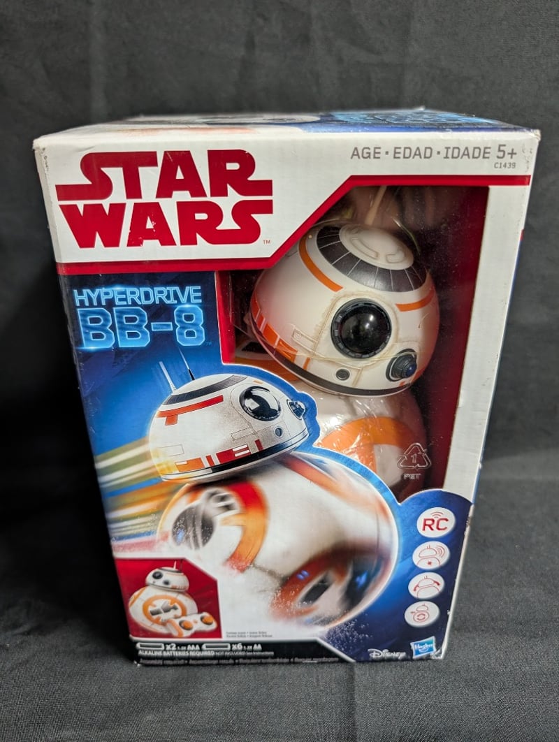 STAR WARS HYPERDRIVE BB-8 REMOTE CONTROL TOY - HASBROItem Size: Height: 30cm, Width: 30cm, Depth: 30cm, Weight: 2KgHasbro Star Wars Hyperdrive Bb-8 Remote Control Droid Featuring Motorized Rolling Action, Expressive Sound And Light-Up Features. Orange And White Spherical Design With Articulated Head Dome. Includes Wireless Rc Controller With Directional Buttons. Age 5+. Original Packaging With Retail Display Box.Condition: Good - Refer To Images584548+50