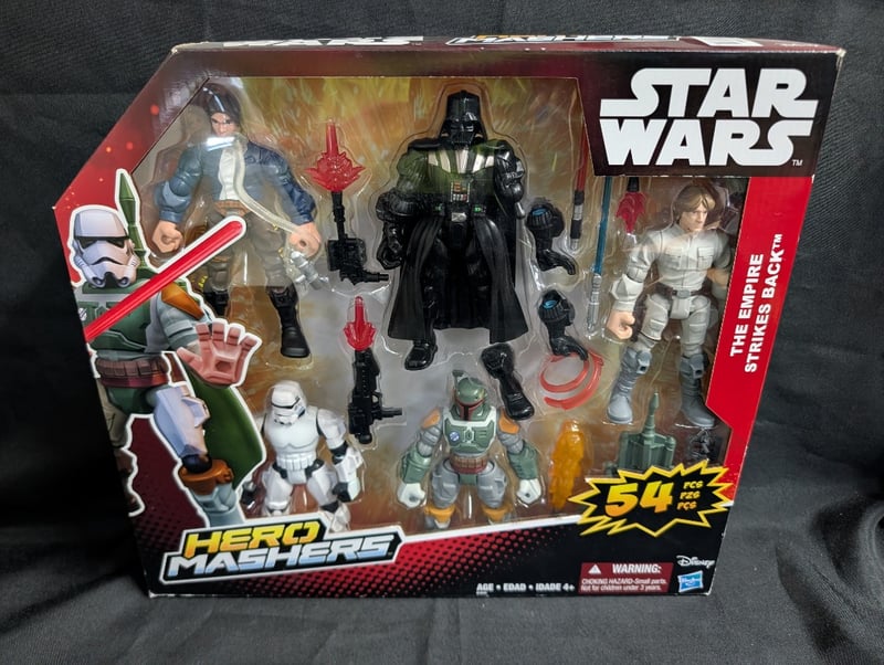 STAR WARS HERO MASHERS ACTION FIGURE SET - THE EMPIRE STRIKES BACKHasbro Star Wars Hero Mashers Multi-Figure Collection Featuring Darth Vader As Centrepiece With Interchangeable Limbs And Accessories, Accompanied By Five Additional Characters Including Stormtrooper, Han Solo, Luke Skywalker, And Boba Fett. Set Includes 54 Pieces With Customisable Mash-Up Functionality Allowing Creative Character Combinations. Original Packaging With Illustrated Display Window Intact.Condition: Good - Refer To Images584548+60