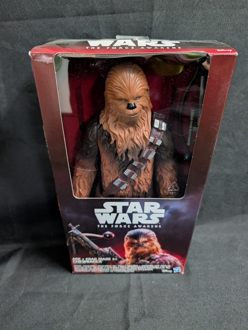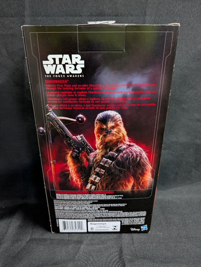 STAR WARS THE FORCE AWAKENS CHEWBACCA ACTION FIGURE - HASBRO COLLECTIBLEItem Size: Height: 30cm, Width: 15cm, Depth: 12cmHasbro Star Wars The Force Awakens Chewbacca Action Figure In Original Packaging. Features Detailed Sculpting Of The Iconic Wookiee Character With Brown Fur Texture, Black Nose Detail, And Authentic Bandolier Chest Strap. Figure Includes Blaster Accessory. Original Red And Black Branded Packaging With Character Artwork And Multilingual TextCondition: Good - Refer To Images584548+61