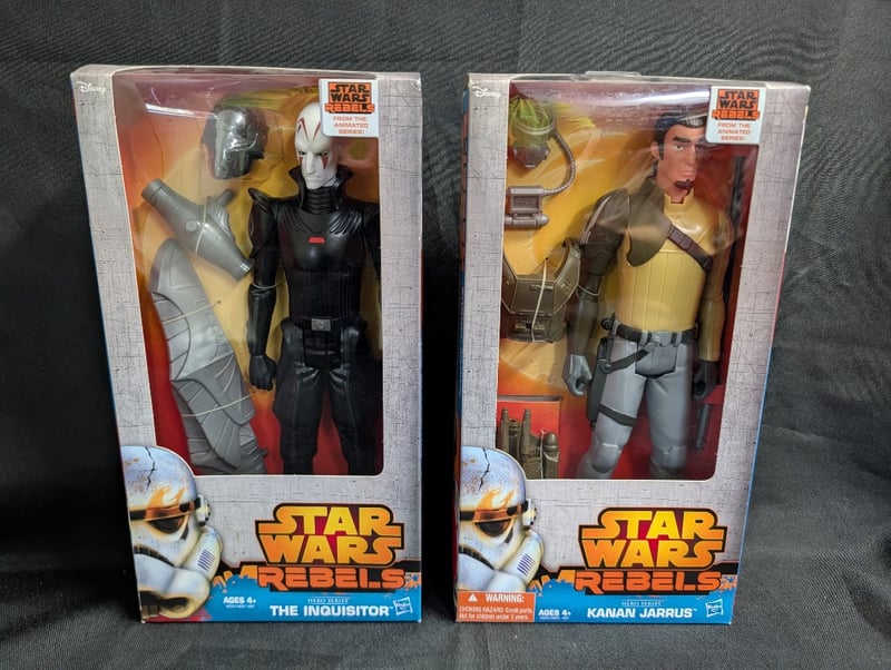 STAR WARS REBELS HERO SERIES ACTION FIGURE COLLECTION - THE INQUISITOR & KANAN JARRUSItem Size: Height: 30cm, Width: 12cm, Depth: 8cmPair Of Hasbro Star Wars Rebels Animated Series Hero Series Action Figures In Original Packaging.Condition: Good - Refer To Images584548+62