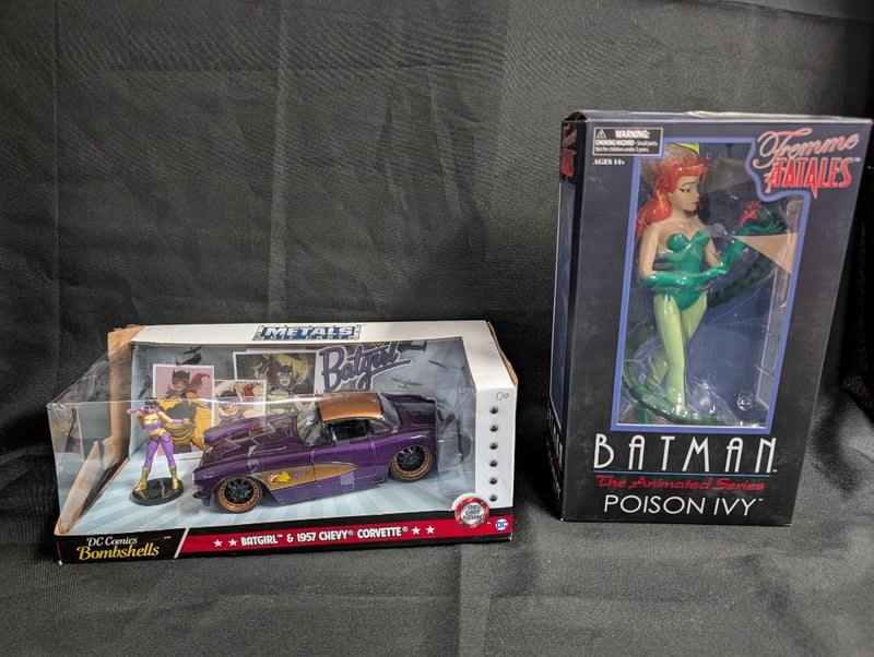 BATMAN THE ANIMATED SERIES COLLECTIBLE SET - BATGIRL & POISON IVY FIGURES WITH 1957 CHEVY CORVETTECondition: Good - Refer To Images584548+65