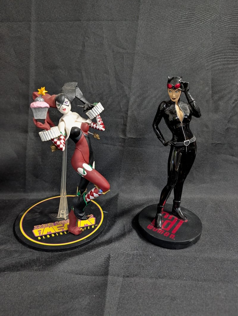 HARLEY QUINN AND CATWOMAN COLLECTIBLE FIGURINE SET - DC COMICS CHARACTER STATUESItem Size: Height: 25cm, Width: 15cm, Depth: 15cmCondition: Good - Refer To Images584548+69