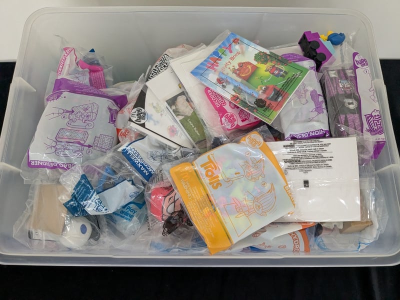 LARGE COLLECTION OF CHILDREN'S MCDONALDS HAPPY MEAL TOYS AND COLLECTIBLES IN STORAGE CONTAINERCondition: Good - Refer To Images584548+77