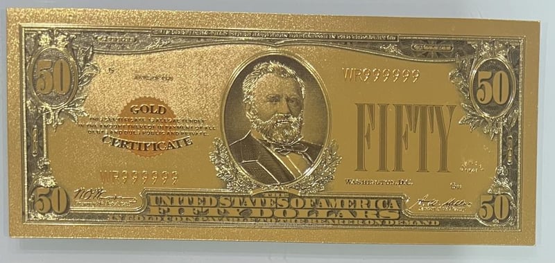 UNITED STATES OF AMERICA $50 DOLLAR GOLD PLATED BANKNOTE