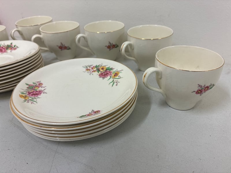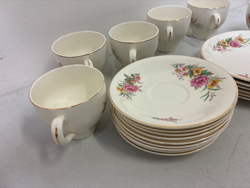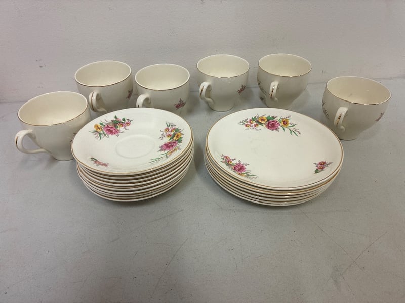 Includes: 6 cups , 6 saucers , 9 cake plates
