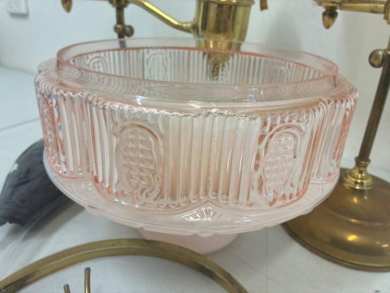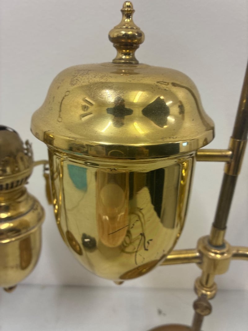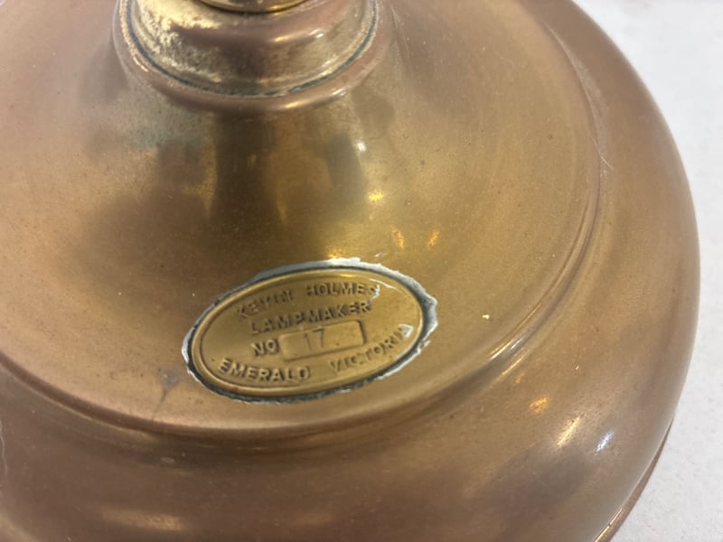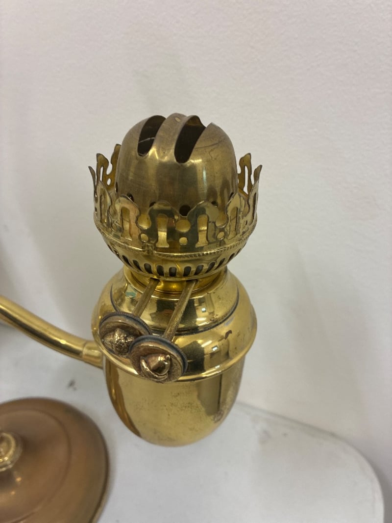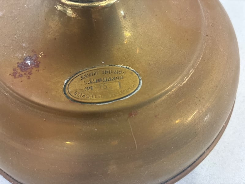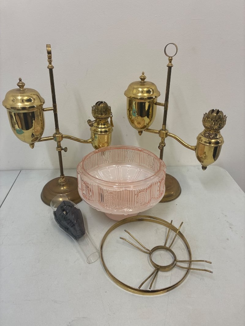 Oil Lamps Lot 2 x Handmade oil lamps and accessories ( 1 original glass shade ) Some pieces require attention ( refer to photos )