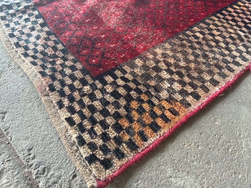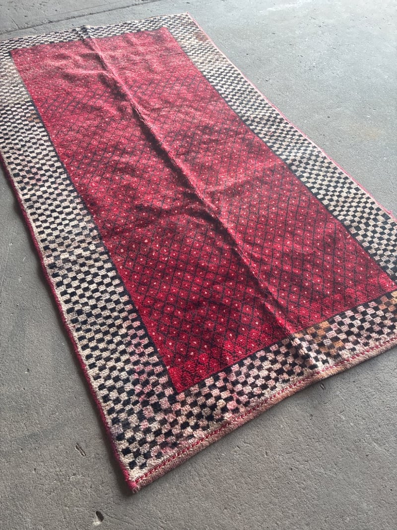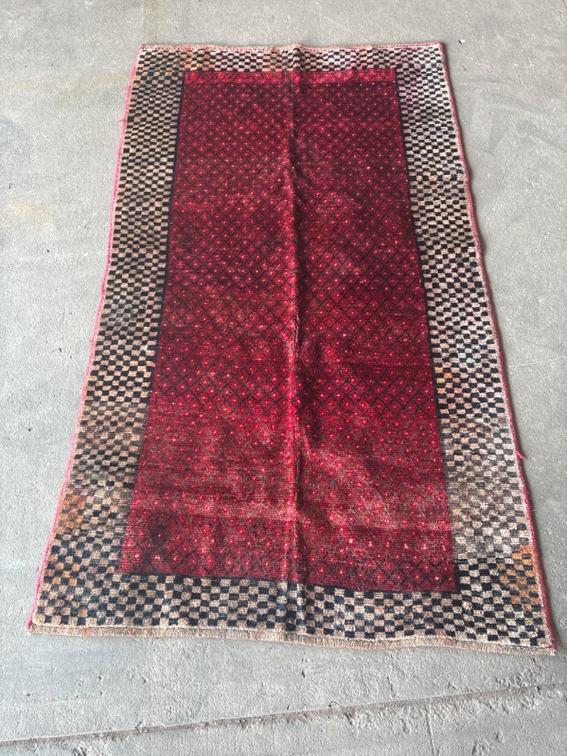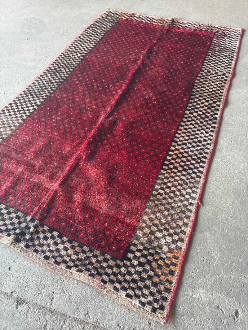 Medium sized rugUsed condition ( refer to photos for blemishes / patterns ) Colour run noticed Notes: Rug has slight odourSOLD AS IS 1950mm L x 1100mm W approx