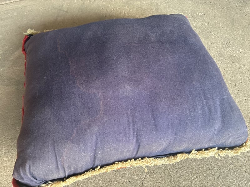 Medium sized cushion 570mm L x 500mm W Approx Shows signs of stains ( refer to photos ) ,