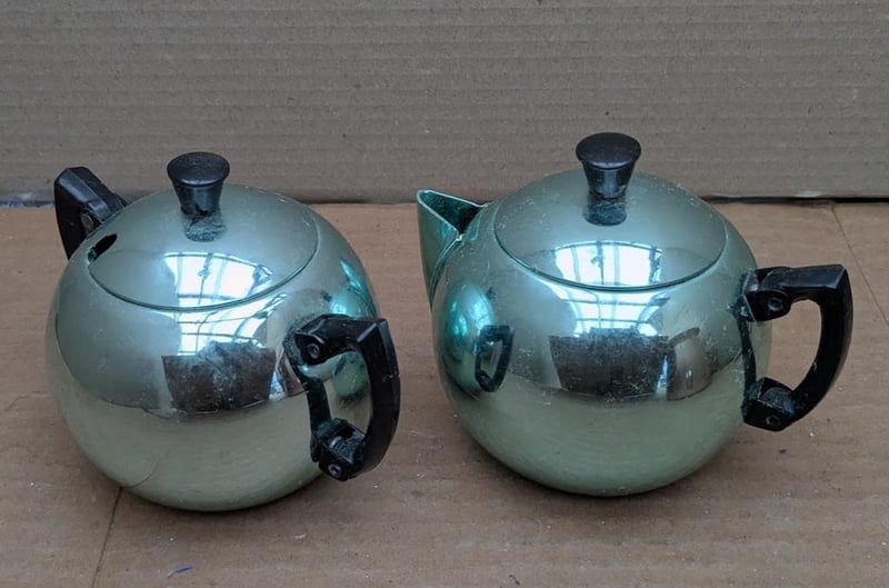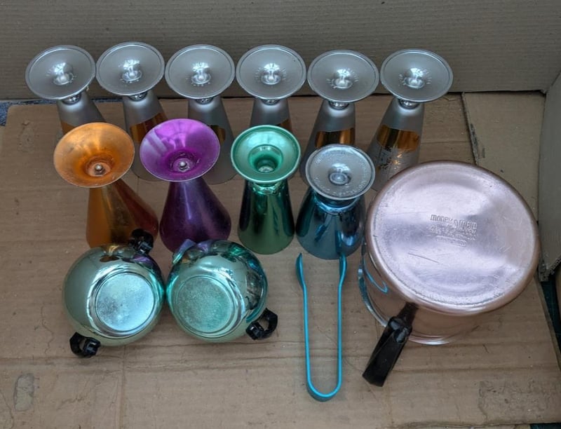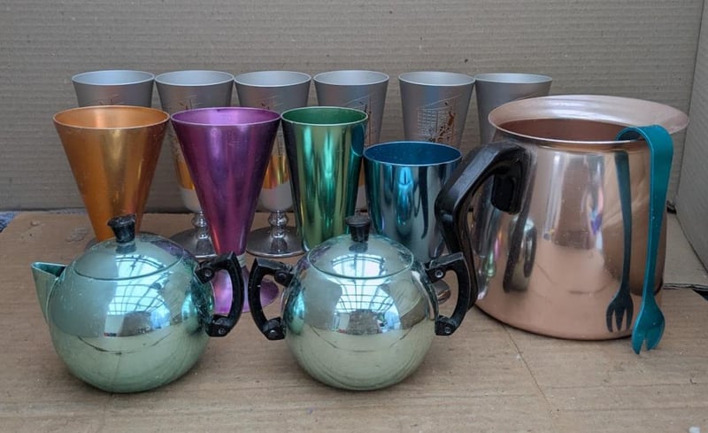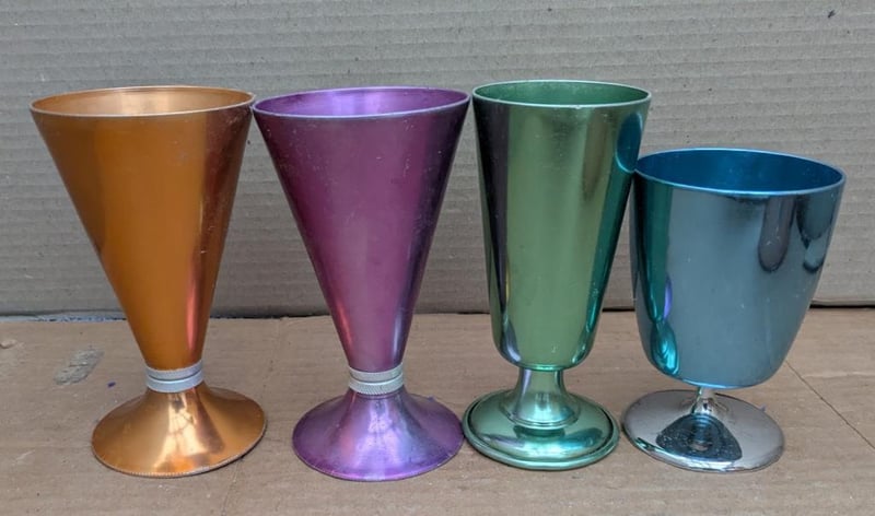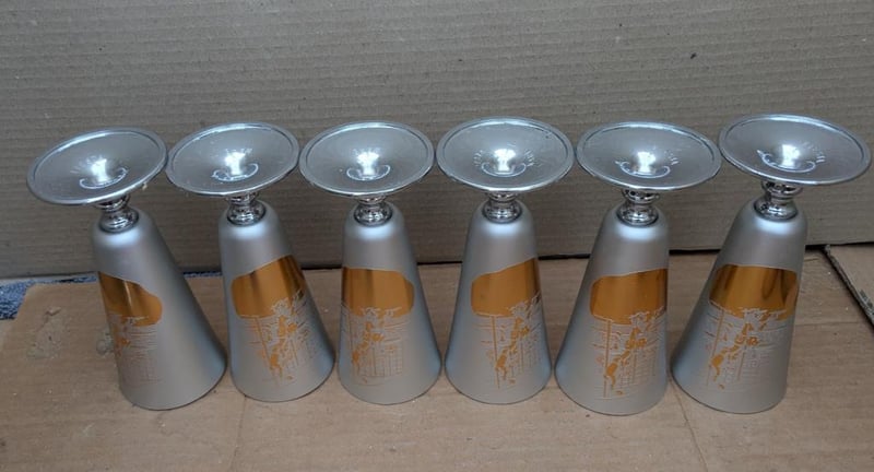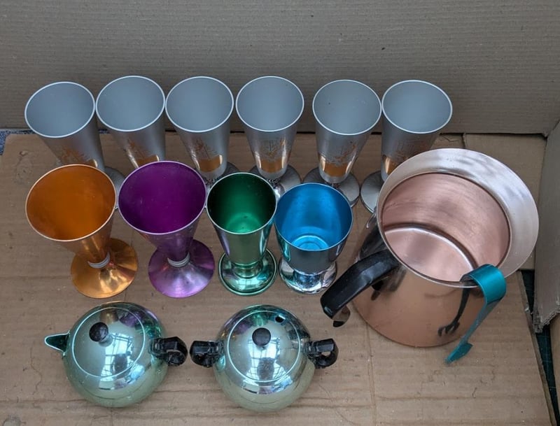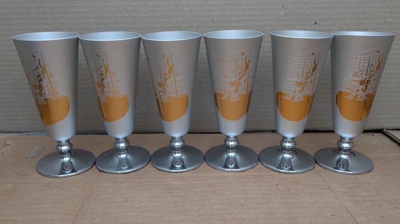 ART DECO ANODISED DRINKING CUPSWine Flute, Ice Bucket, Milk And Sugar Bowl Qty 13 Condition: Good - Refer Images582952+1
