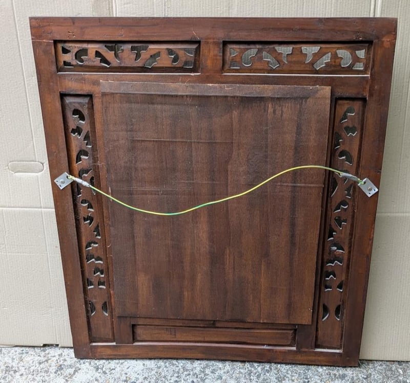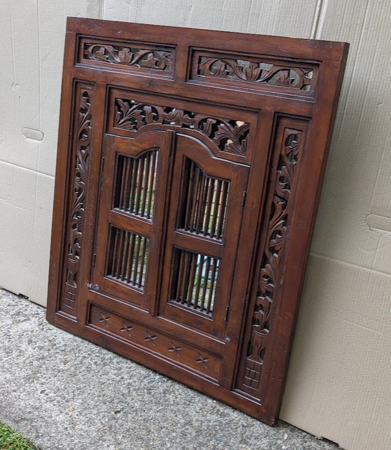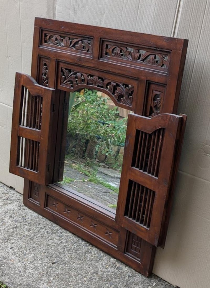 VINTAGE WALL MIRROR, BALI WOOD CARVING WINDOW FRAME
