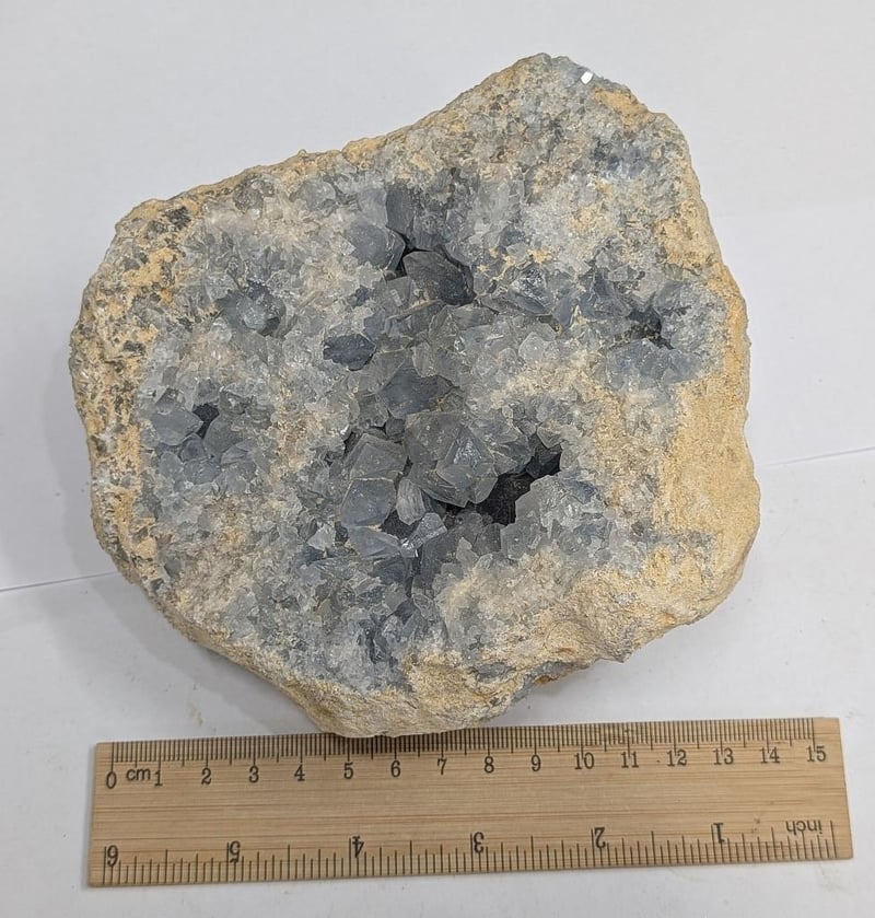 TWO KILO CELESTITE CRYSTAL GEODE FROM MADAGASCARMost Celestite That You See Today Is Found In Madagascar But It Was Discovered In Europe In 1799. It Gets Its Name From The Latin Word Coelestis – Which Means “Celestial And Heavenly”. It Is Mined Commercially For Its Strontium Content – A Mineral Commonly Used To Make Fireworks And Various Metal Alloys. For New Age Purposes It Is Connected To The Divine, Increasing Spiritual Awareness, Clears The Mind, Brings Inner Peace, Relieves Pain And Brings Love, Fortune And Good Luck.Condition: Good - Refer Images584556+34