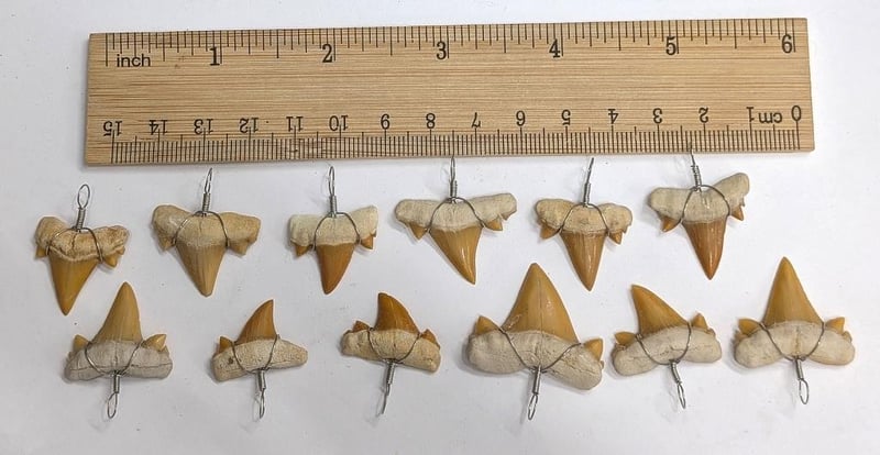 DOZEN 40 MILLION YEAR OLD FOSSIL SHARK TEETH MADE INTO PENDANTSThese Were Dug Out Of The Phosphate Mines In MoroccoCondition: Good - Refer Images584556+57