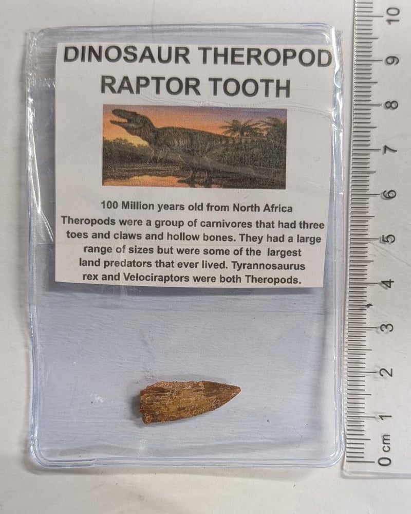100 MILLION YEAR OLD RAPTOR DINOSAUR TOOTH FOSSIL FROM MOROCCO100 Million Years Old From North Africa Theropods Were A Group Of Carnivores That Had Three Toes And Claws And Hollow Bones. They Had A Large Range Of Sizes But Were Some Of The Largest Land Predators That Ever Lived. Tyrannosaurus Rex And Velociraptors Were Both Theropods.Condition: Good - Refer Images584556+18