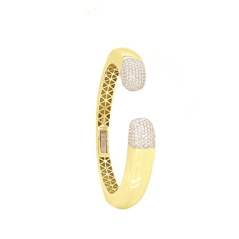 9K Yg Hinged Cuff Bangle With Diamond Ends, 268D = 1.31Ct, Si1 G. 54X47Mm
