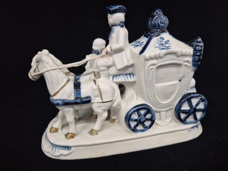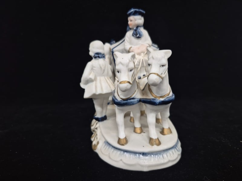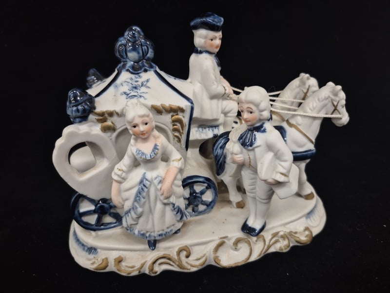 PORCELAIN FIGURINE GROUP - ROYAL CARRIAGE SCENE WITH ATTENDANTS Item Size: Height: 18cm, Width: 22cm, Depth: 15cm, Weight: 0.5Kg Condition: Fair - Refer To Images 587964+4