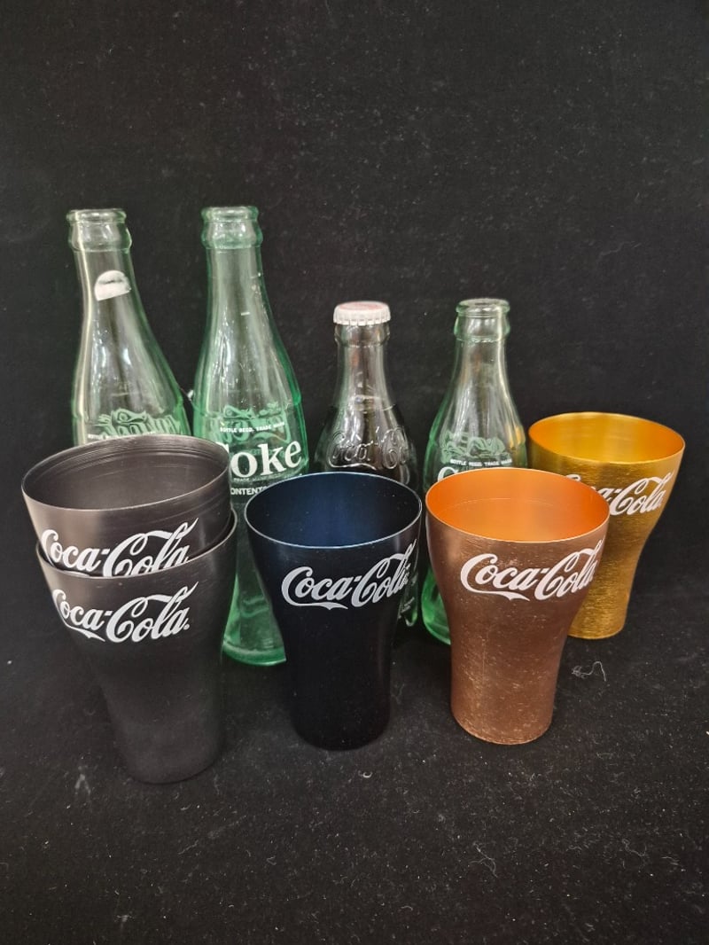 COCA-COLA COLLECTIBLES COLLECTION - BOTTLES AND ALUMINUM CUPS Condition: Fair - Refer To Images 587964+6