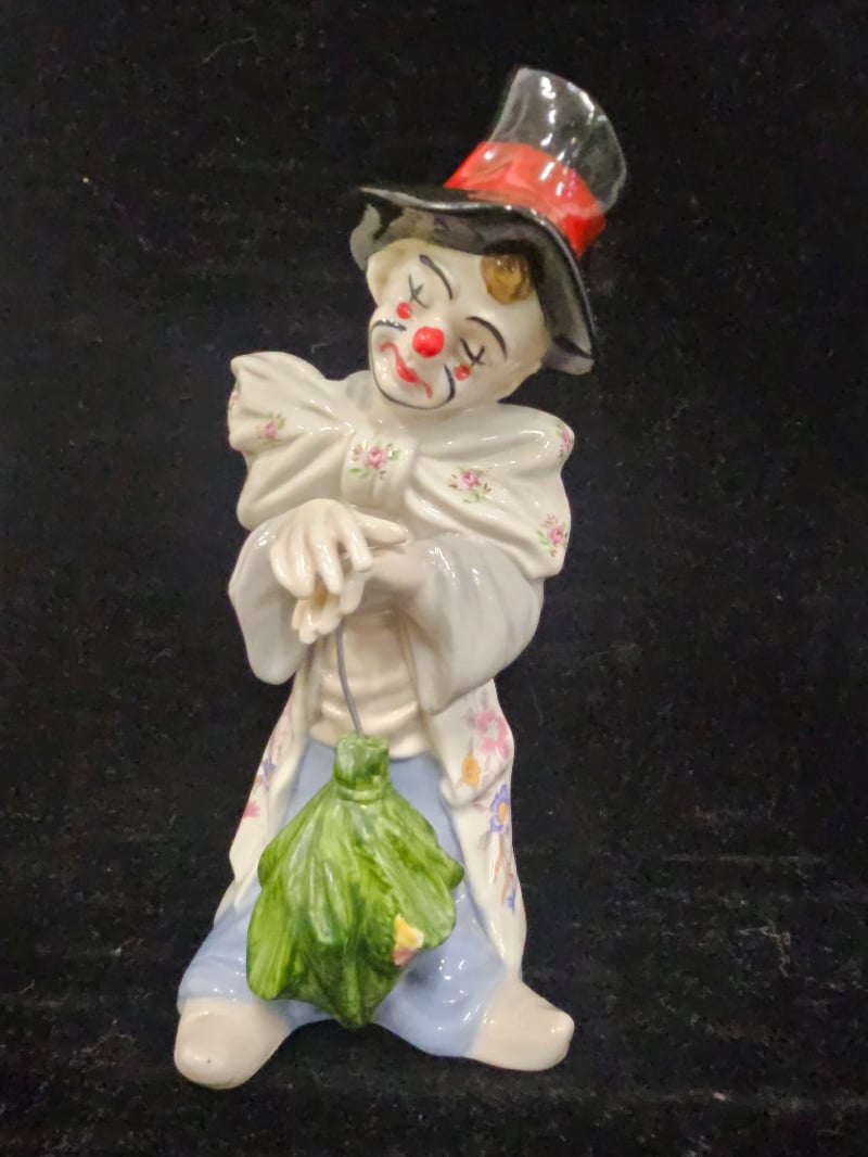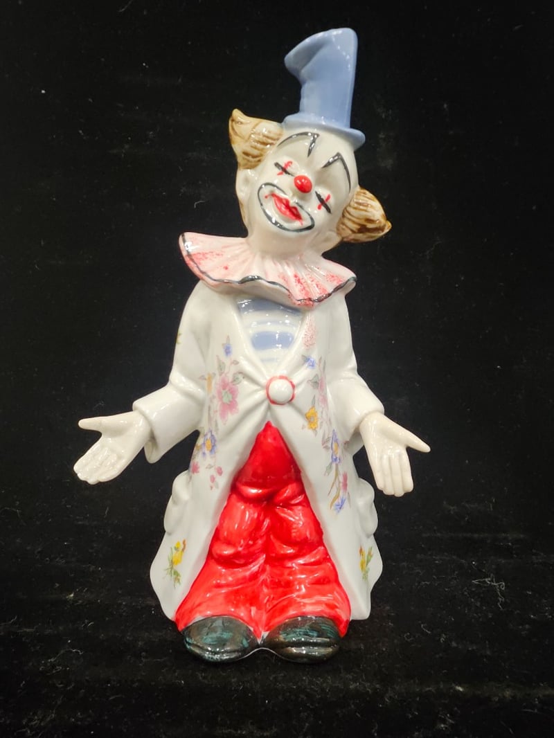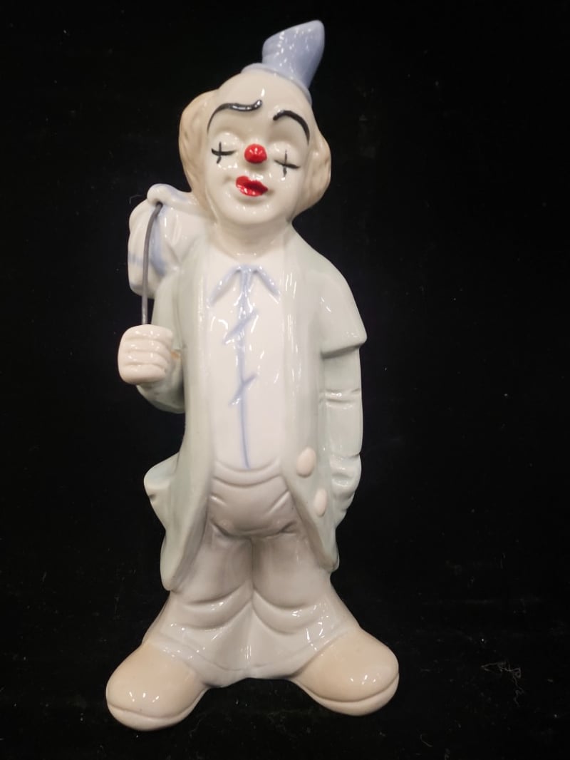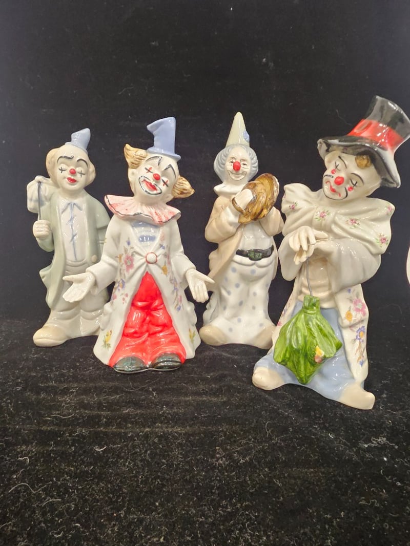 FOUR PORCELAIN CLOWN STATUES Item Size: Height: 27.5cm, Width: 30cm, Depth: 30cm, Weight: 2Kg Statue Heights Range From 27.5Cm - 25Cm Condition: Good - Refer To Images 587964+12